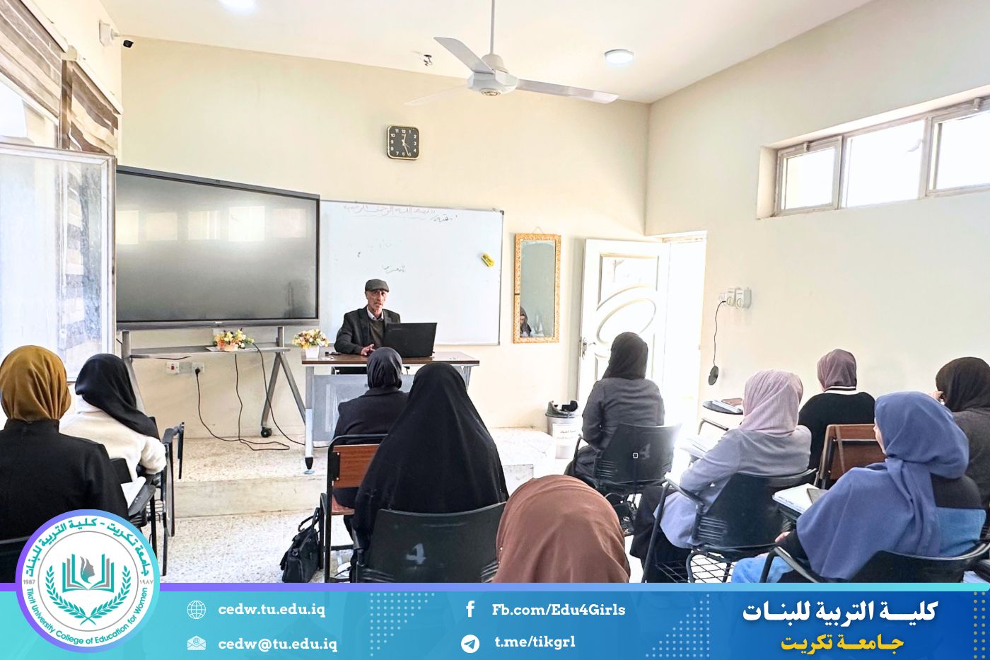 نظّم قسم علوم القرآن والتربية الإسلامية في كلية التربية للبنات بجامعة تكريت، وبالتعاون مع مركز التعليم المستمر، ندوة تثقيفية بعنوان “الوقاية من الأمراض والأوبئة في ضوء النصوص والحقائق العلمية”، وذلك يوم الاثنين الموافق ٢٤ / ١١ / ٢٠٢٥، على قاعة الدراسات الأولية في قسم علوم القرآن والتربية الإسلامية.