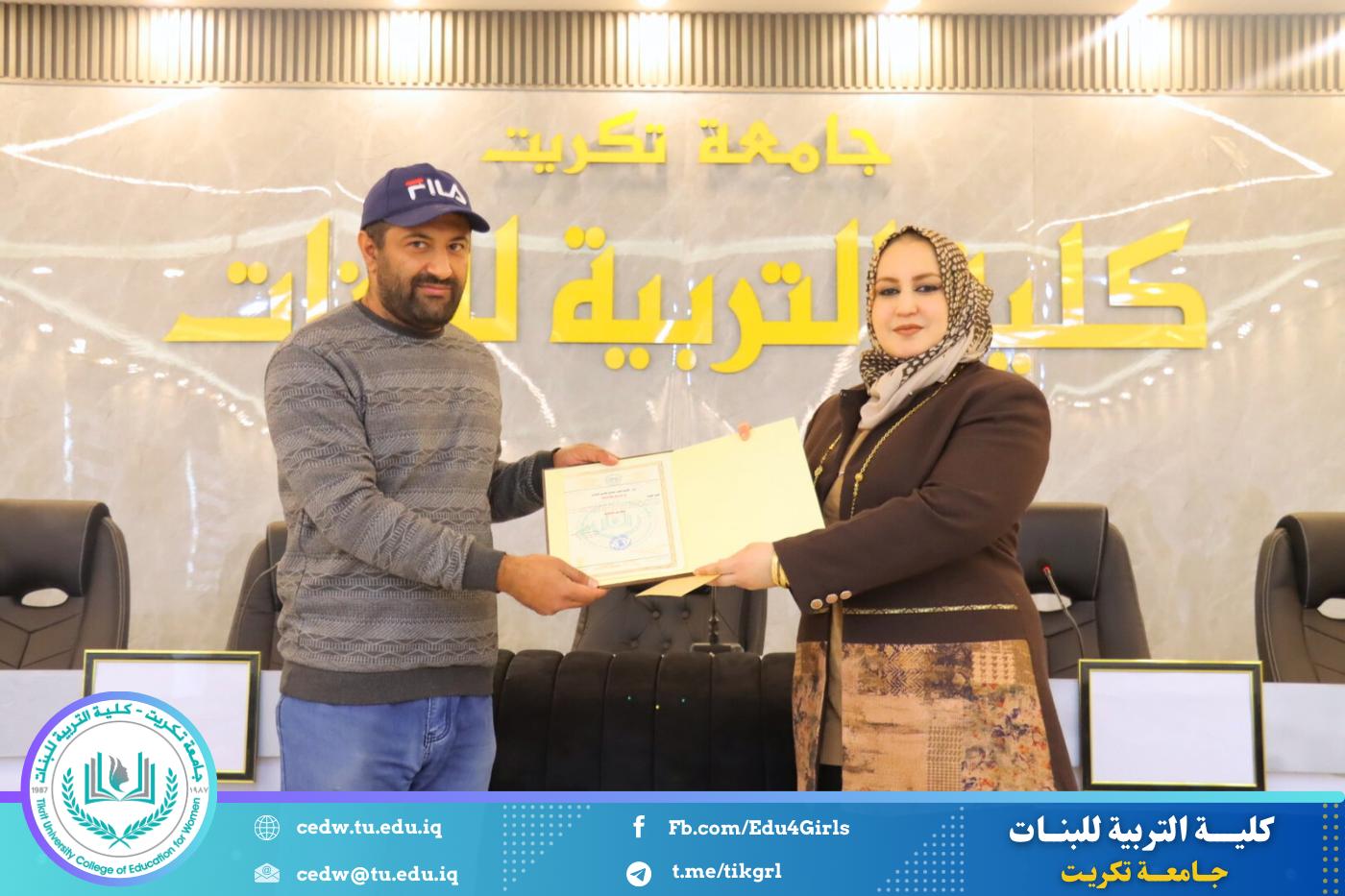 وجاء هذا التكريم في إطار اهتمام الكلية بإشاعة روح التعاون والتحفيز بين منتسبيها، وتثمين الدور الحيوي الذي تؤديه شعبة الخدمات في تهيئة المرافق والقاعات الدراسية والممرات والمكاتب الإدارية، بما يعكس صورة إيجابية عن الكلية ويسهم في توفير أجواء مريحة ومناسبة للطالبات والتدريسيين.