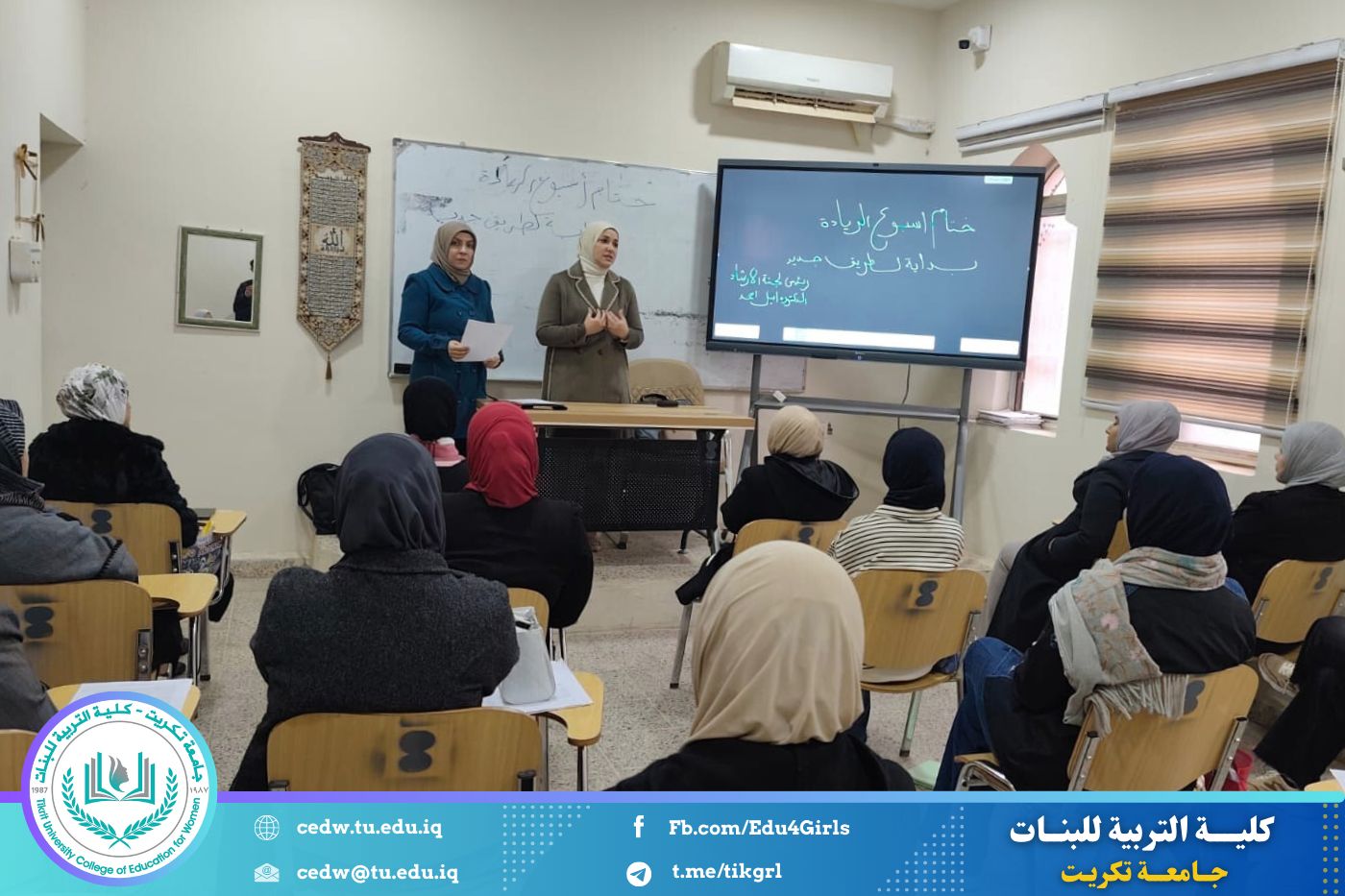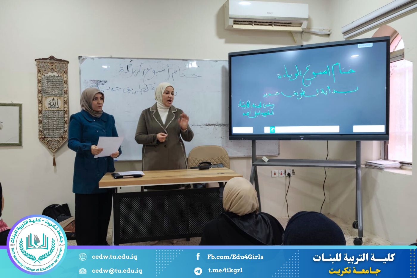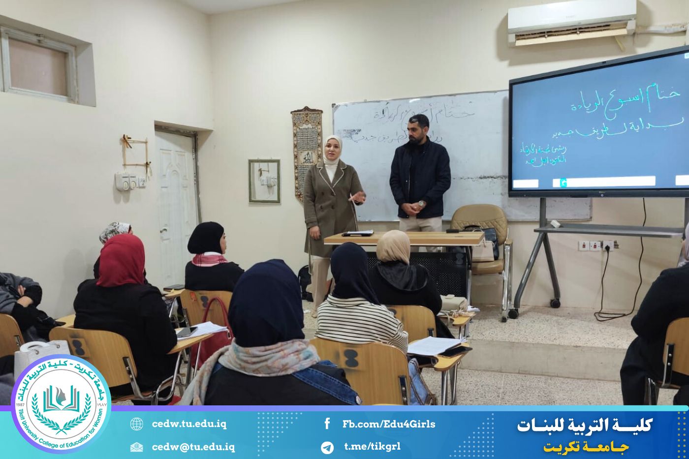 اختتم قسم الاقتصاد المنزلي في كلية التربية للبنات بجامعة تكريت، بالتعاون مع وحدة الإرشاد النفسي والتوجيه التربوي، فعاليات الأسبوع الريادي بإقامة ندوة بعنوان «بداية لطريق جديد»، وذلك صباح يوم الثلاثاء الموافق ٩ كانون الأول ٢٠٢٥، في قاعات القسم، تحت شعار «ريادة اليوم… مستقل الغد».