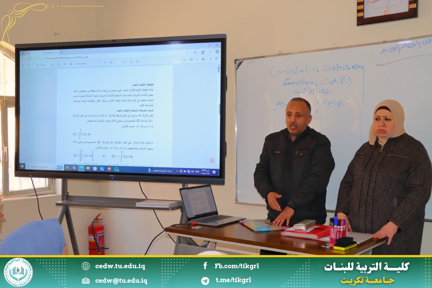 وقد هدفت الدورة إلى أهمية التكامل المحدد وغير المحدد، مع بيان مجالات تطبيق التكامل المحدد وغير المحدد في الحياة