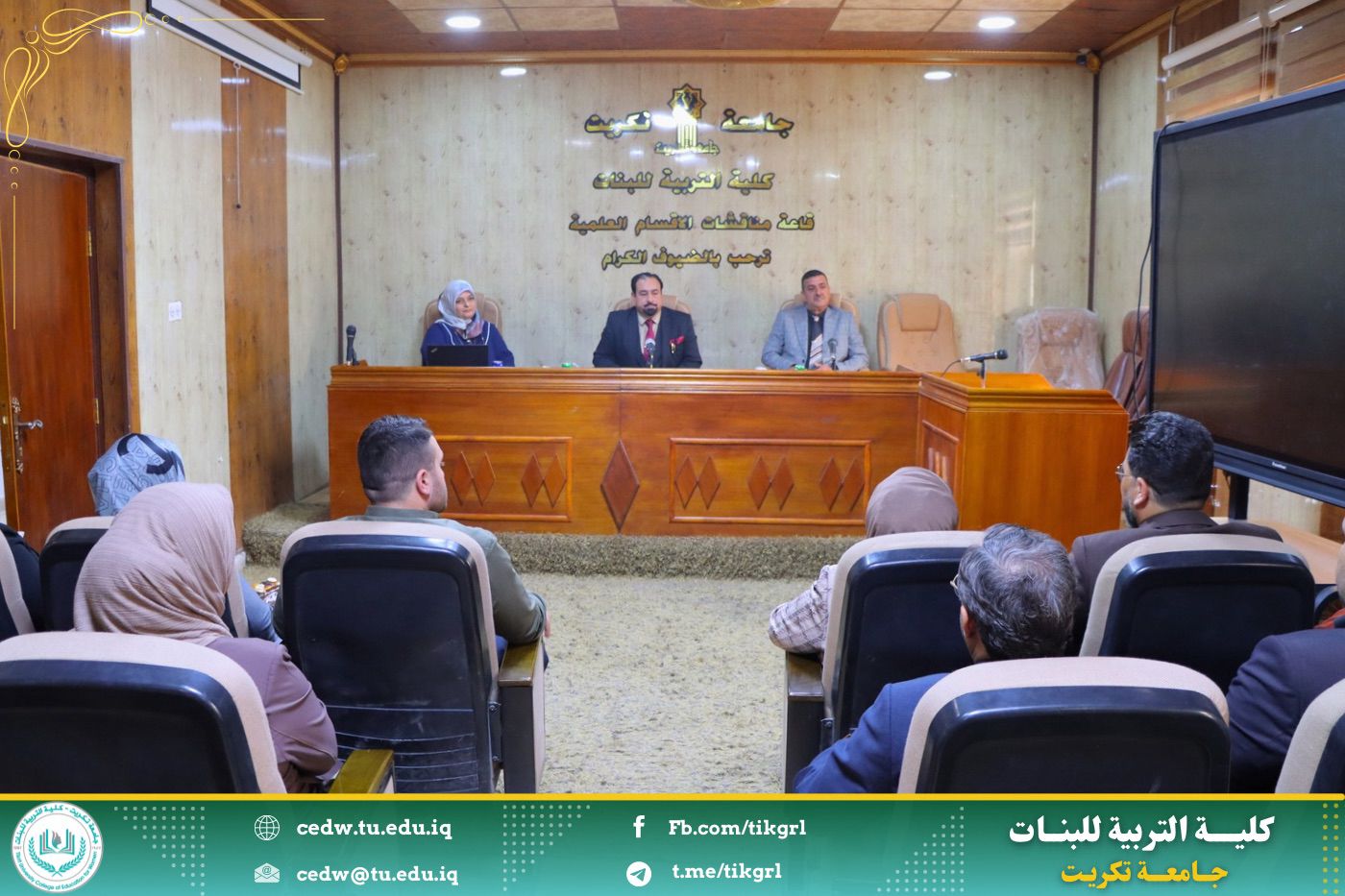 بحضور الأستاذة الدكتورة نجلاء عبدالحسين عليوي عميد كلية التربية للبنات، والأستاذ حسان جمعة مطر مدير قسم تربية تكريت، والأستاذة المساعدة الدكتورة سلمى خالد ياسين معاون العميد للشؤون الإدارية، وعدد كبير من الكوادر التدريسية، انطلقت صباح يوم الأربعاء الموافق 16 نيسان 2025 أعمال الدورة المتخصصة بعنوان "طرائق تدريس مادة الأحياء الحديثة"، والتي نظمها قسم علوم الحياة في كلية التربية للبنات بالتعاون مع الشؤون العلمية ومديرية تربية صلاح الدين، واستمرت حتى يوم الخميس 17 نيسان، على قاعة السمنار في بناية الأقسام العلمية. وتهدف هذه الدورة إلى تعزيز مهارات التدريس الفعّال لمادة الأحياء، من خلال تسليط الضوء على أحدث الاستراتيجيات التربوية، ومقارنة الأساليب الحديثة بالطرائق التقليدية، فضلاً عن عرض تطبيقات عملية مبتكرة تركز على تطوير التفكير النقدي لدى الطلبة، وتفعيل استخدام التقنيات التكنولوجية في العملية التعليمية. كما ركزت المحاور الأساسية للدورة على تبسيط المفاهيم العلمية وتقديمها بشكل مشوّق وتفاعلي، مما يساهم في زيادة الفهم والاستيعاب لدى الطالبات، إلى جانب تشجيع التعاون بين الأقسام العلمية في المؤسسات الأكاديمية والتربوية. حاضر في الدورة كل من السادة الأفاضل:- الأستاذ الدكتور زكريا عبد أحمد المدرس الدكتورة رؤى عباس عبدالرزاق المدرس فؤاد حميد مجيد المدرس المساعد هند فاروق عبدالحميد واختُتمت الدورة بإشادة الحضور بالمستوى العلمي والعملي العالي، مؤكدين على أهمية مواصلة عقد مثل هذه الورش التطويرية التي تصب في خدمة العملية التربوية والتعليمية.