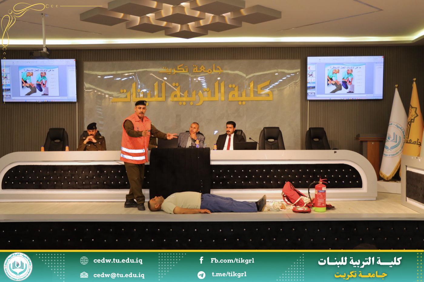 أقامت شعبة السلامة والأمن الكيميائي والبايولوجي والإشعاعي في رئاسة جامعة تكريت بالتعاون مع مركز التعليم المستمر و مديرية الدفاع المدني في محافظة صلاح الدين، وتنفيذاً لتعليمات وزارة التعليم العالي والبحث العلمي وتوجيهات رئاسة الجامعة