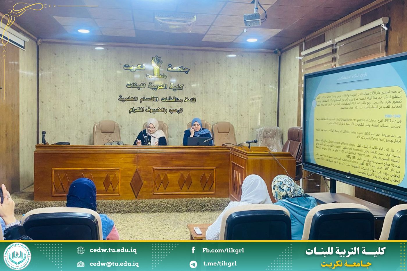 أقامت كلية التربية للبنات / قسم علوم الحياة، بالتعاون مع قسم الشؤون العلمية ومديرية تربية صلاح الدين، دورة علمية بعنوان : "إيجابيات وسلبيات استخدام الذكاء الاصطناعي في دراسة مادة الأحياء"، وذلك يومي الأحد والاثنين الموافق ٢٠ - ٢١ / ٤ / ٢٠٢٥، على رحاب قاعة السمنار في بناية الأقسام العلمية.