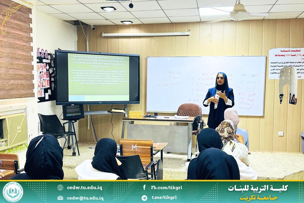 نظم مركز التعليم المستمر بالتعاون مع قسم اللغة الإنكليزية في كلية التربية للبنات ندوة علمية بعنوان: استراتيجيات التدريس المبتكرة: لجذب متعلمي اللغة الإنكليزية في العصر الحالي وذلك يوم الاربعاء لموافق 23 / 4/ 2025، على قاعة المرحلة الرابعة قسم E
