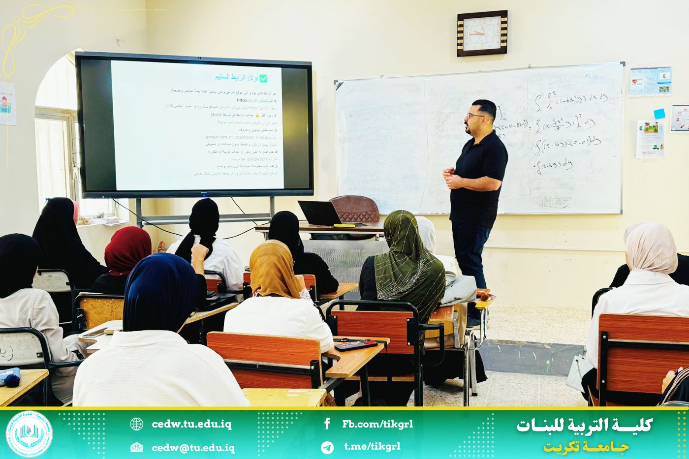 أقام مركز التعليم المستمر بالتعاون مع كلية التربية للبنات دورة تدريبية بعنوان: "روابط الإنترنت والشبكة الآمنة: كيفية تمييز الروابط السليمة من الملغمة"، وذلك على مدار يومي الأحد والاثنين، ٢٧-٢٨ نيسان ٢٠٢٥، في قاعة المرحلة الأولى - قسم الرياضيات.