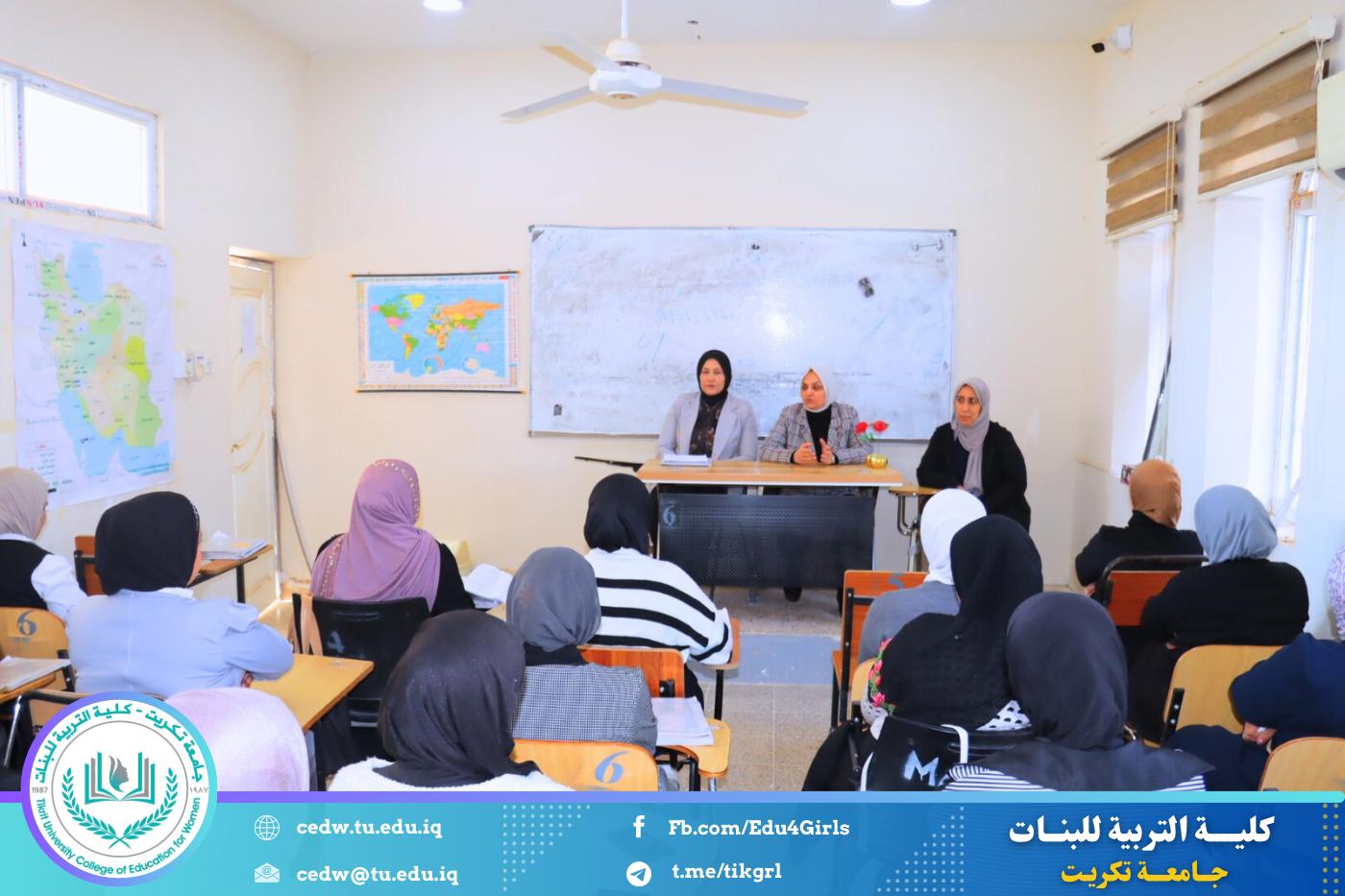 أقامت وحدة الإرشاد التربوي والنفسي، بالتعاون مع قسم التاريخ في كلية التربية للبنات – جامعة تكريت، ندوة إرشادية بعنوان: “رمضان شهر علم وعبادة”، وذلك يوم الاثنين الموافق 2 / 3 / 2026، على قاعة المرحلة الثانية / قسم التاريخ