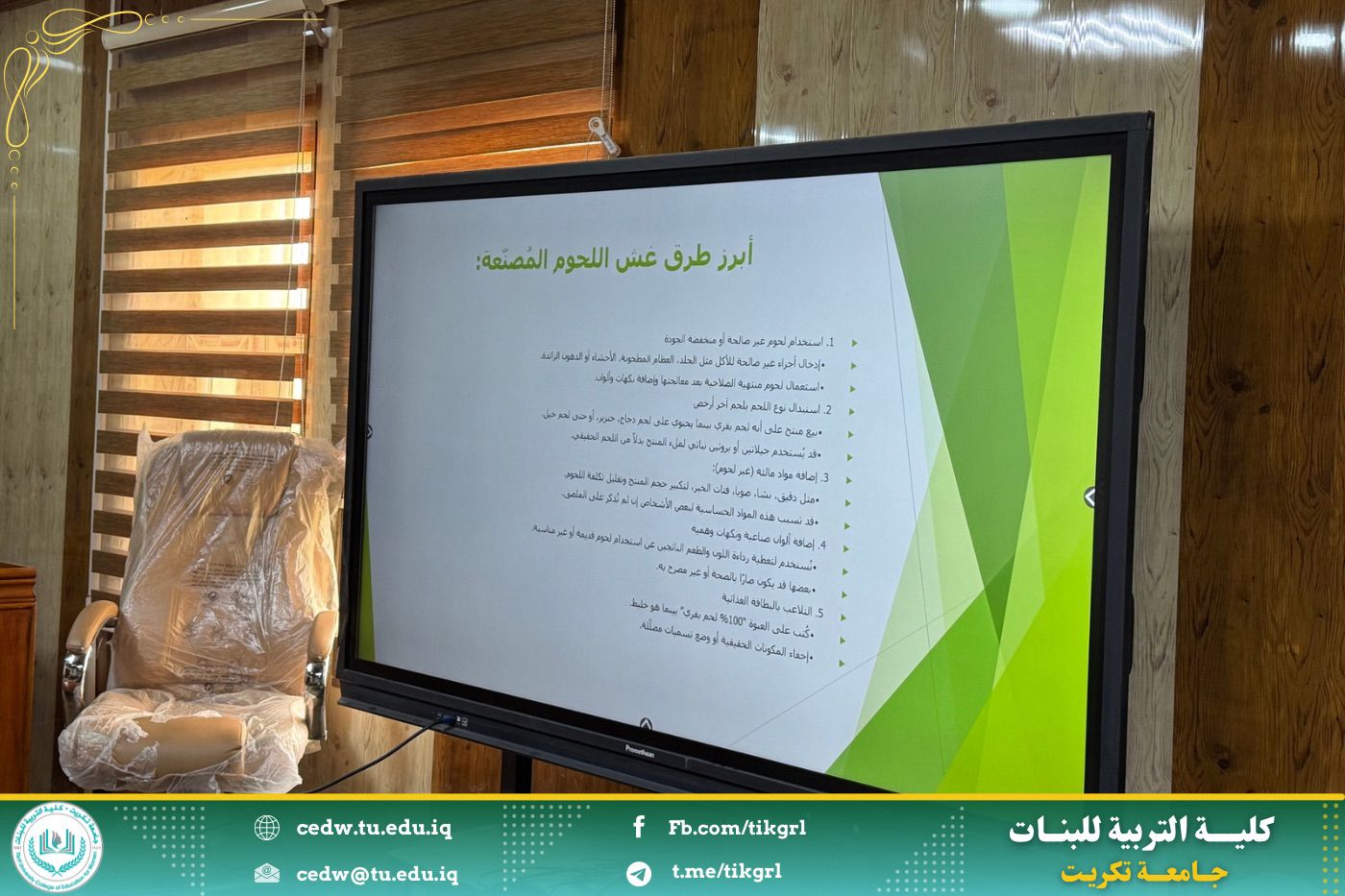 أقام مركز التعليم المستمر بالتعاون مع كلية التربية للبنات ندوة بعنوان: ( التقنيات الحديثة المستخدمة للكشف عن غش اللحوم المصنعة في الاسواق المحلية ) في اليوم الاربعاء الموافق 9/ 4/ 2025 على قاعة السمنار في بناية الأقسام العلمية