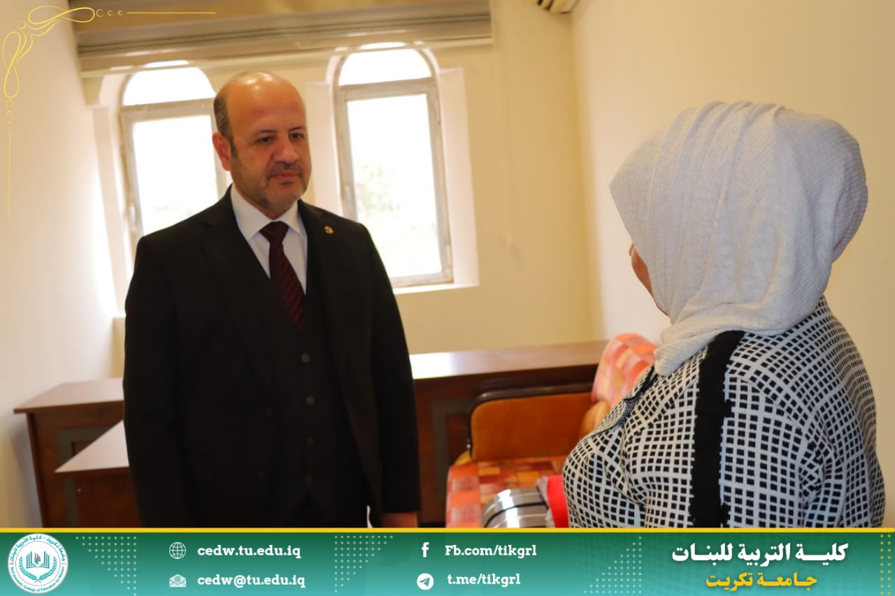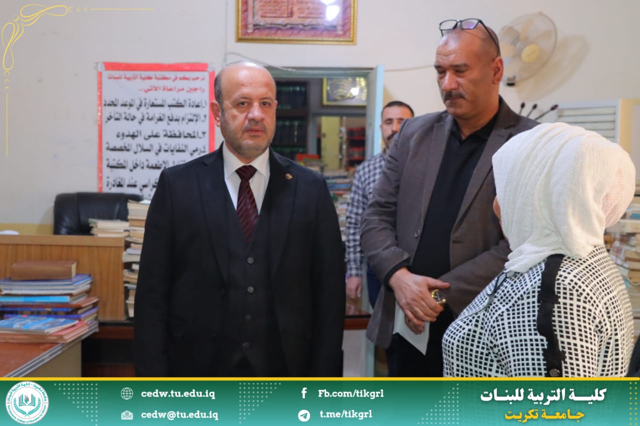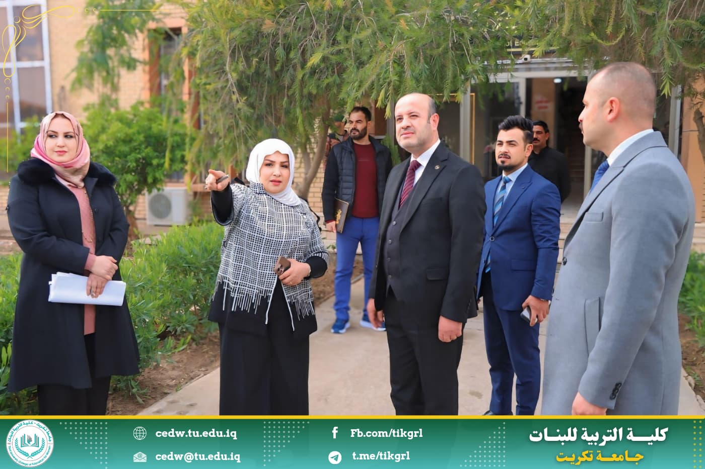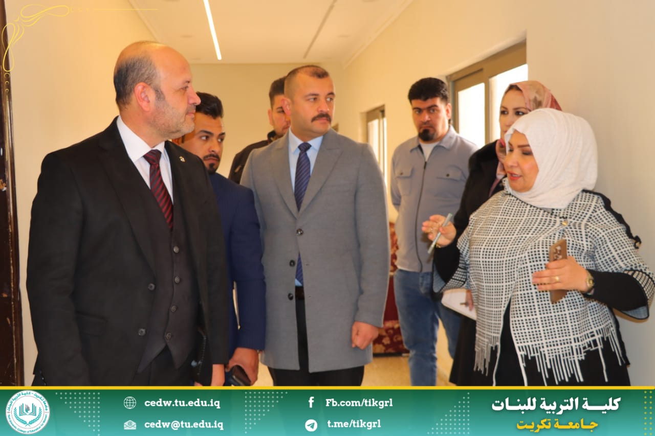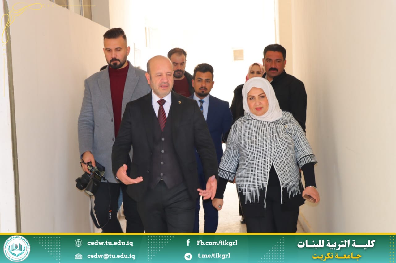 وايضاً تجول سيادته في اروقة الكلية المختلفة للاطلاع على الواقع العلمي والعمراني فيها مشيداً الجهود المبذولة من قبل عمادة كلية التربية وملاكها التدريسي والإداري والخدمي التي أثمرت عن تحقيق العديد من مستويات التقدم في المجالات كافة كما وأشاد بالإنجازات العمرانية التي شملت ترميم قسم اللغة العربية واروقة الكلية المختلفة . وعدّها خطوة مهمة نحو التقدم إلى الأمام، وقد شجع الجهود الرامية لتحقيق التميز الأكاديمي وتطوير البيئة التعليمية في كلية التربية للبنات