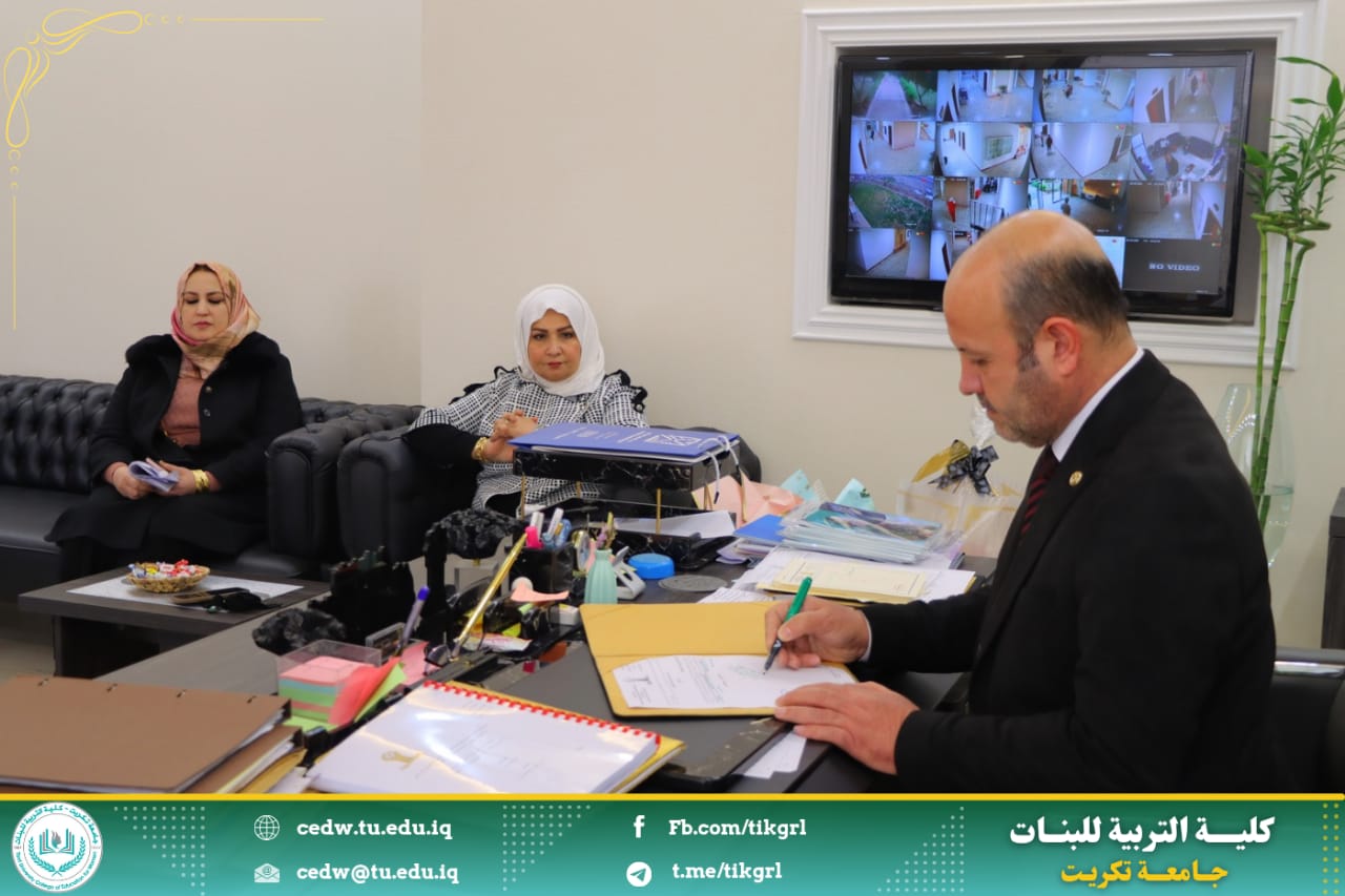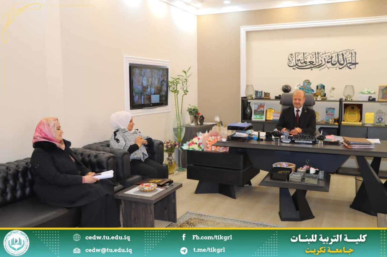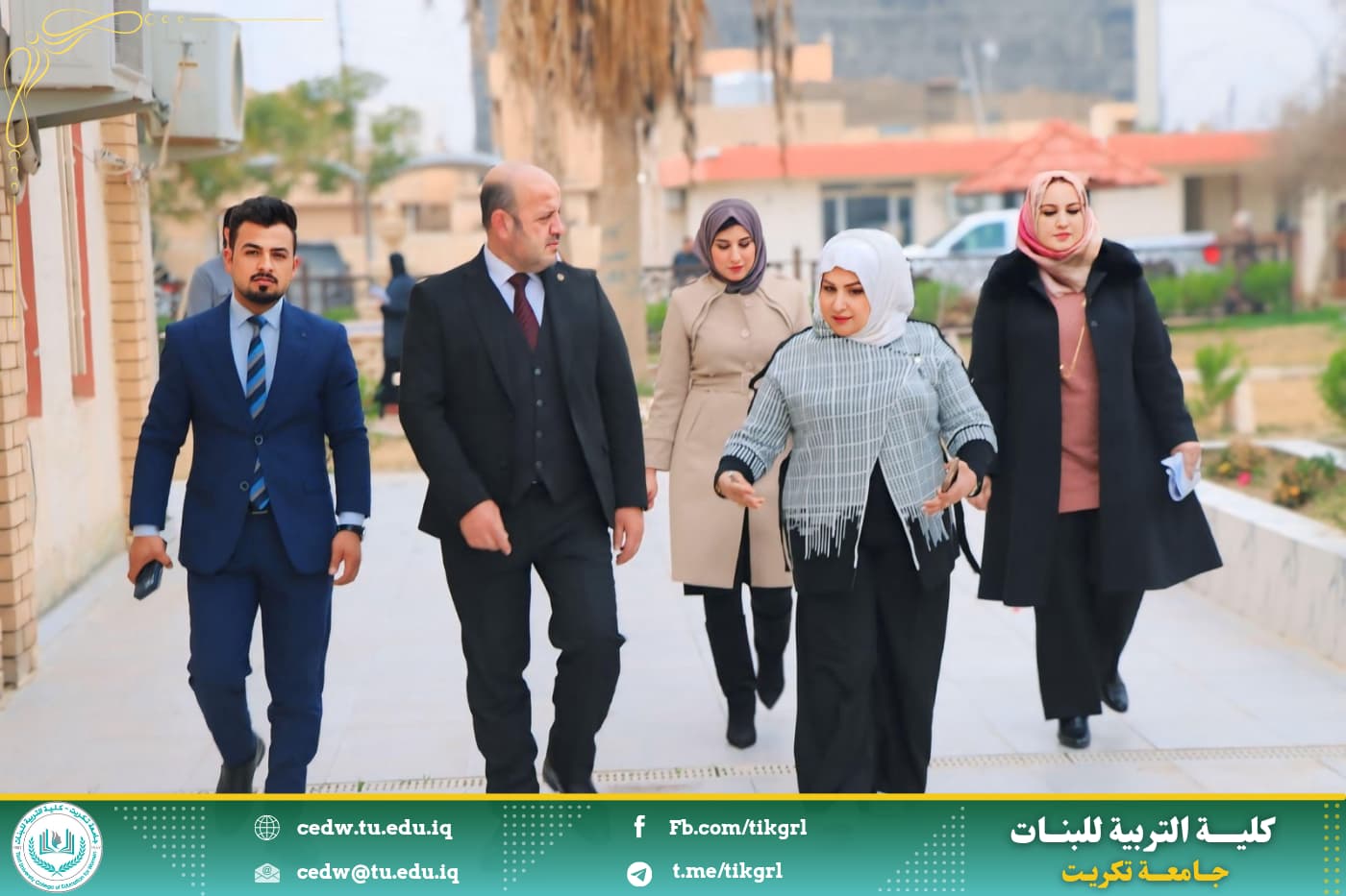 زار كلية التربية للبنات السيد رئيس جامعة تكريت الاستاذ الدكتور وعد محمود رؤوف وكانت في استقبالهم السيدة عميد الكلية الاستاذ الدكتورة نجلاء عبدالحسين عليوي والسيدة معاون العميد للشؤون الإدارية الاستاذ المساعد الدكتورة سلمى خالد ياسين في اليوم الاحد الموافق 12 / 1/ 2025