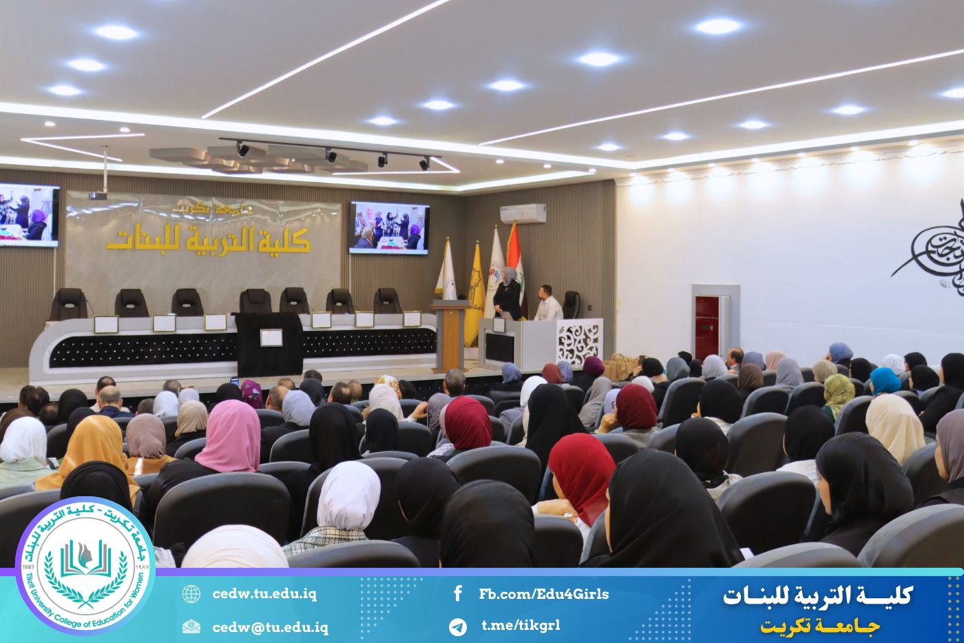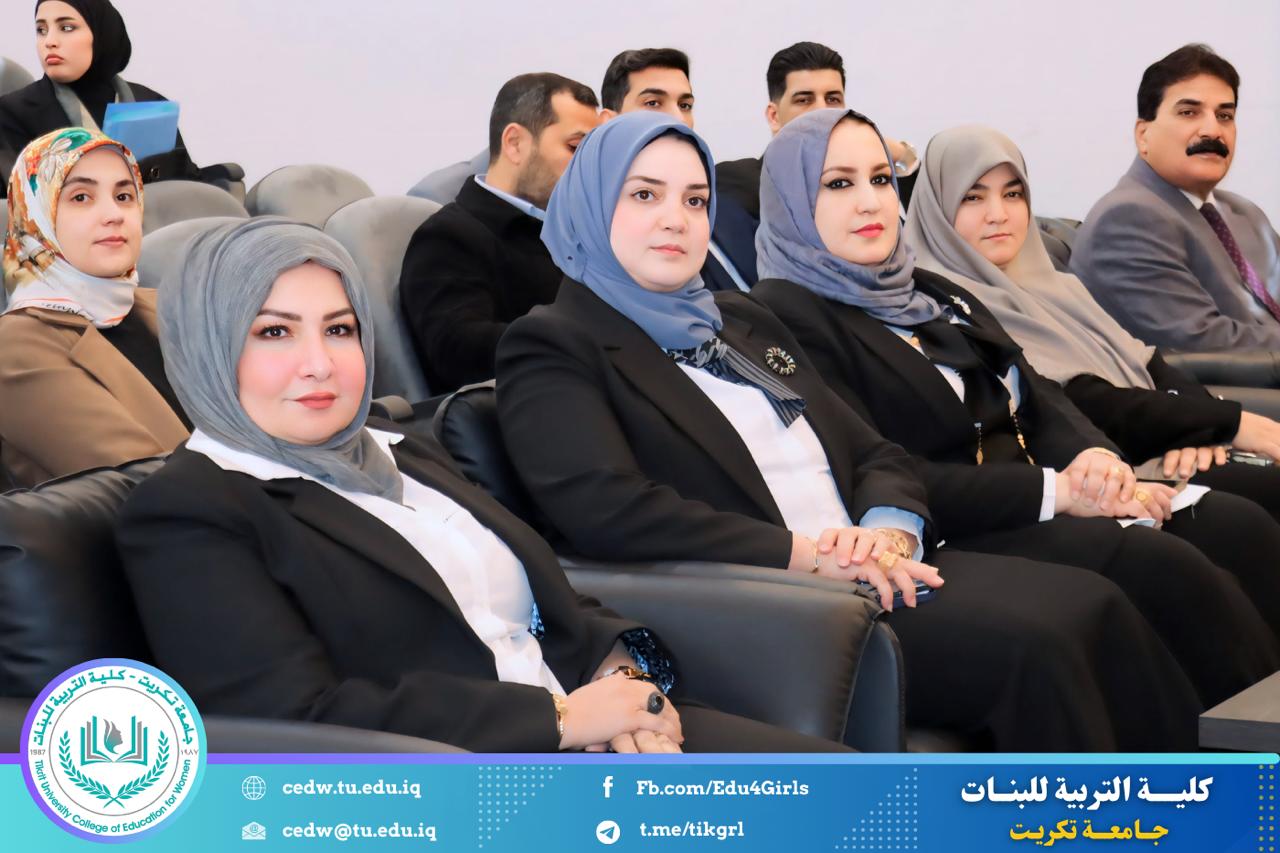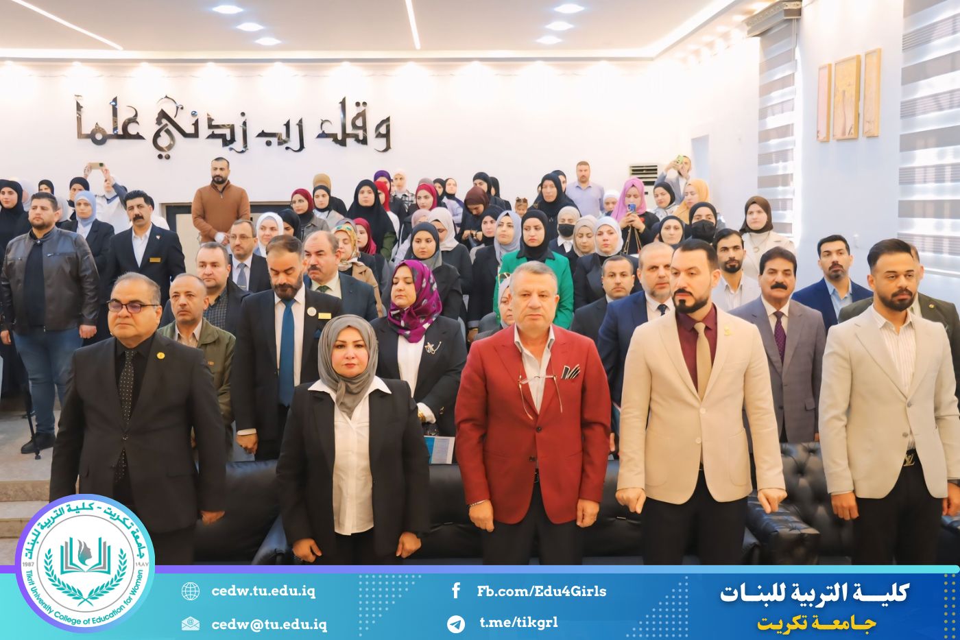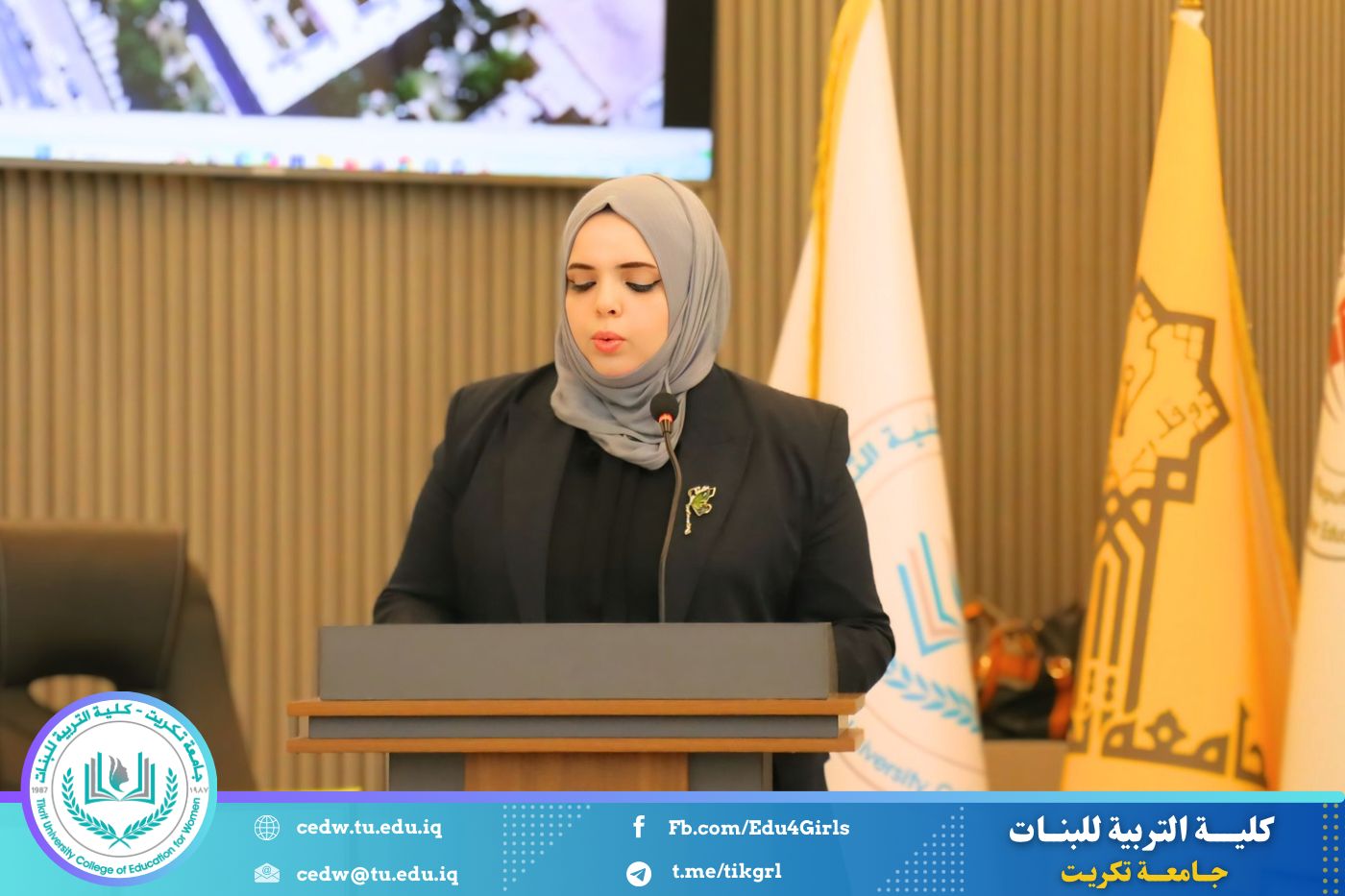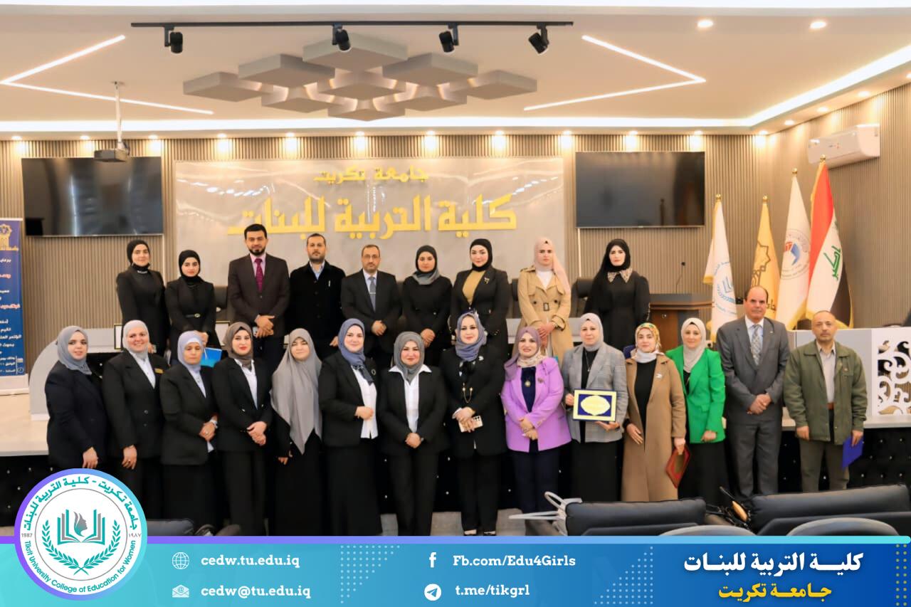 برعاية السيد رئيس جامعة تكريت الأستاذ الدكتور وعد محمود رؤوف، وبإشراف السيدة عميد كلية التربية للبنات الأستاذ الدكتورة نجلاء عبدالحسين عليوي، وبحضور السيد معاون رئيس الجامعة للشؤون العلمية الأستاذ الدكتور حسن حسين إبراهيم، والسيد مدير قسم الدراسات والتخطيط في جامعة تكريت الأستاذ الدكتور صالح حسن عبد الله، عقدت كلية التربية للبنات صباح اليوم الأربعاء الموافق ١١ آذار ٢٠٢٦ مؤتمرها العلمي السابع عشر لمناقشة بحوث التخرج لطلبة المرحلة الرابعة، وذلك على قاعة المرحوم الأستاذ الدكتور جايد زيدان، وتحت شعار (بحوث التخرج – دفعة رائدات المعرفة).