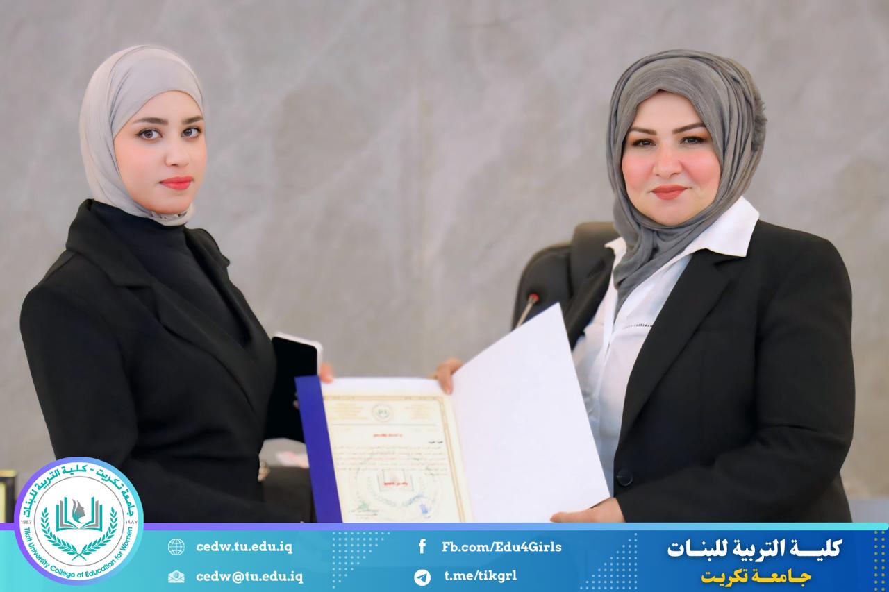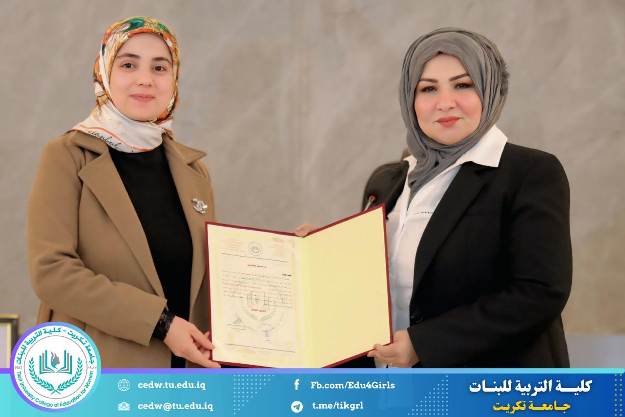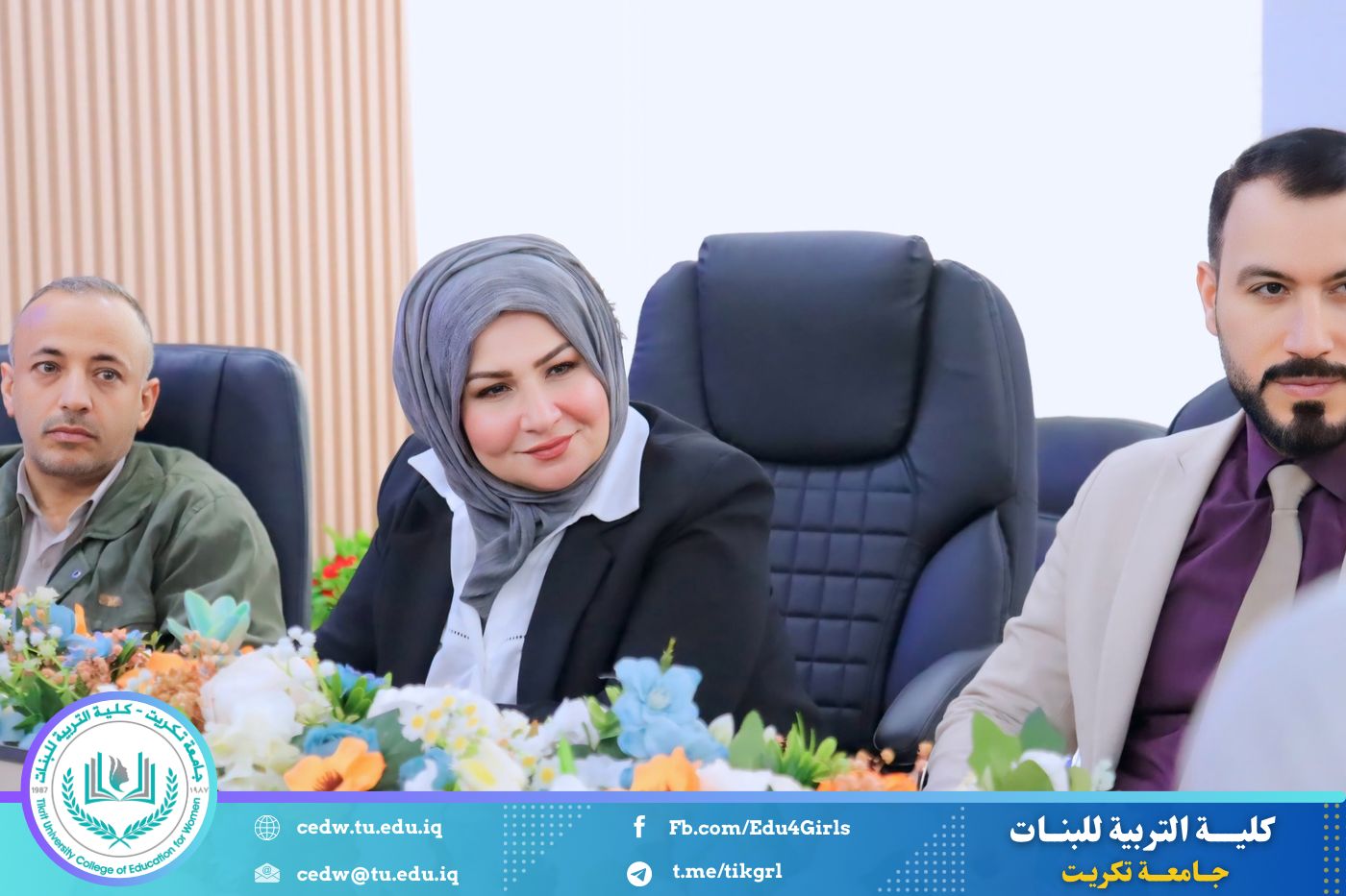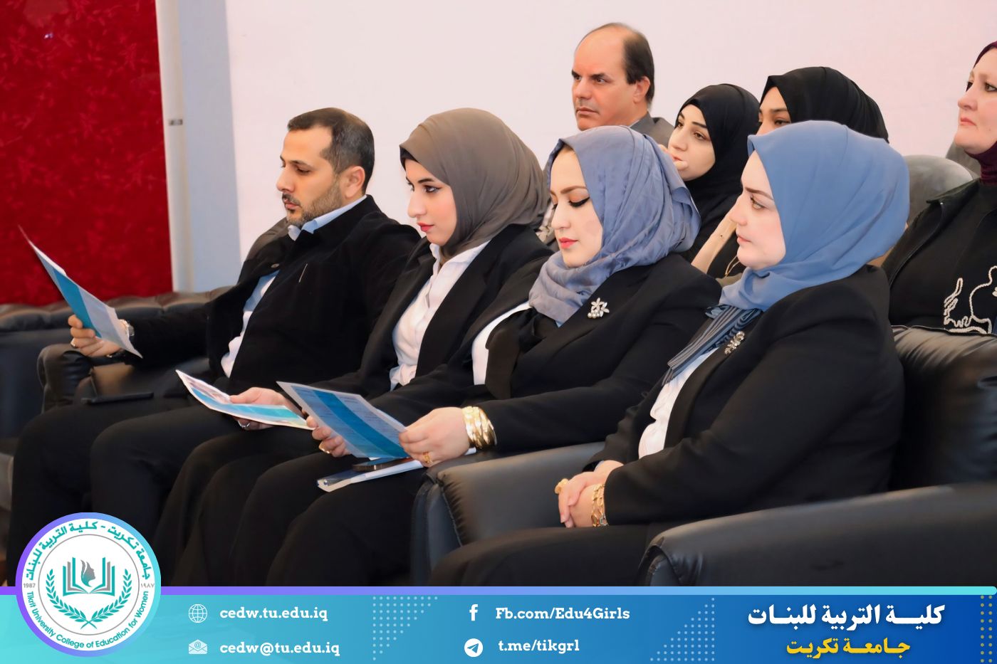 برعاية السيد رئيس جامعة تكريت الأستاذ الدكتور وعد محمود رؤوف، وبإشراف السيدة عميد كلية التربية للبنات الأستاذ الدكتورة نجلاء عبدالحسين عليوي، وبحضور السيد معاون رئيس الجامعة للشؤون العلمية الأستاذ الدكتور حسن حسين إبراهيم، والسيد مدير قسم الدراسات والتخطيط في جامعة تكريت الأستاذ الدكتور صالح حسن عبد الله، عقدت كلية التربية للبنات صباح اليوم الأربعاء الموافق ١١ آذار ٢٠٢٦ مؤتمرها العلمي السابع عشر لمناقشة بحوث التخرج لطلبة المرحلة الرابعة، وذلك على قاعة المرحوم الأستاذ الدكتور جايد زيدان، وتحت شعار (بحوث التخرج – دفعة رائدات المعرفة).