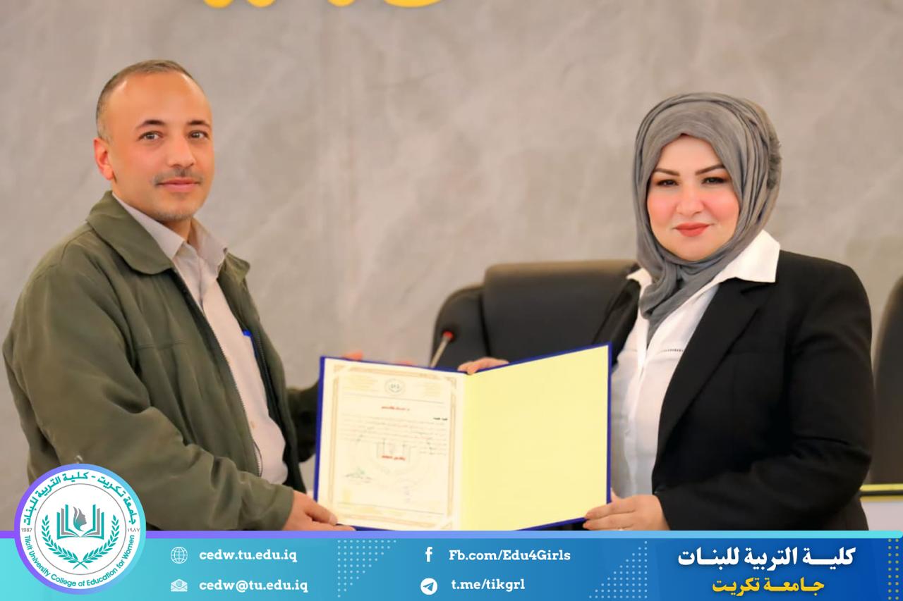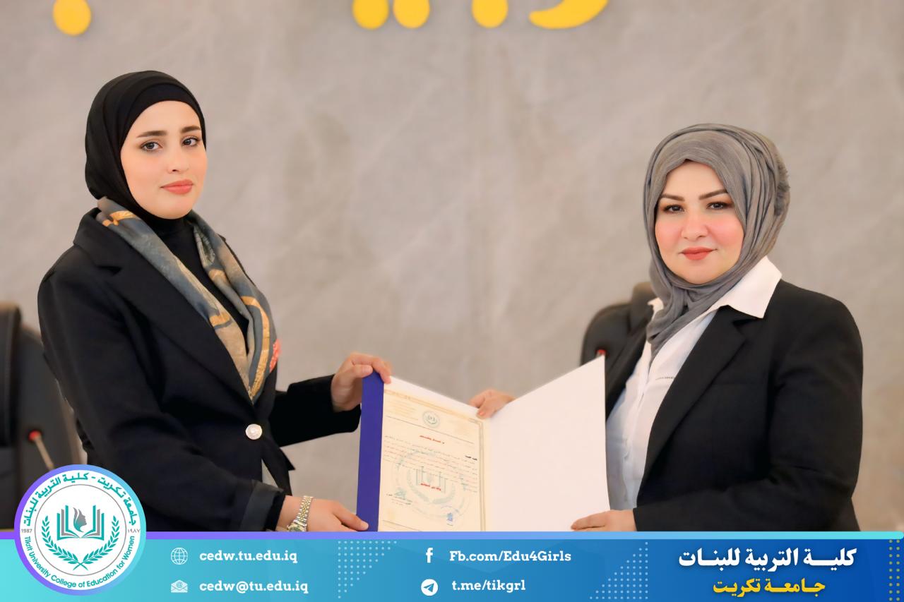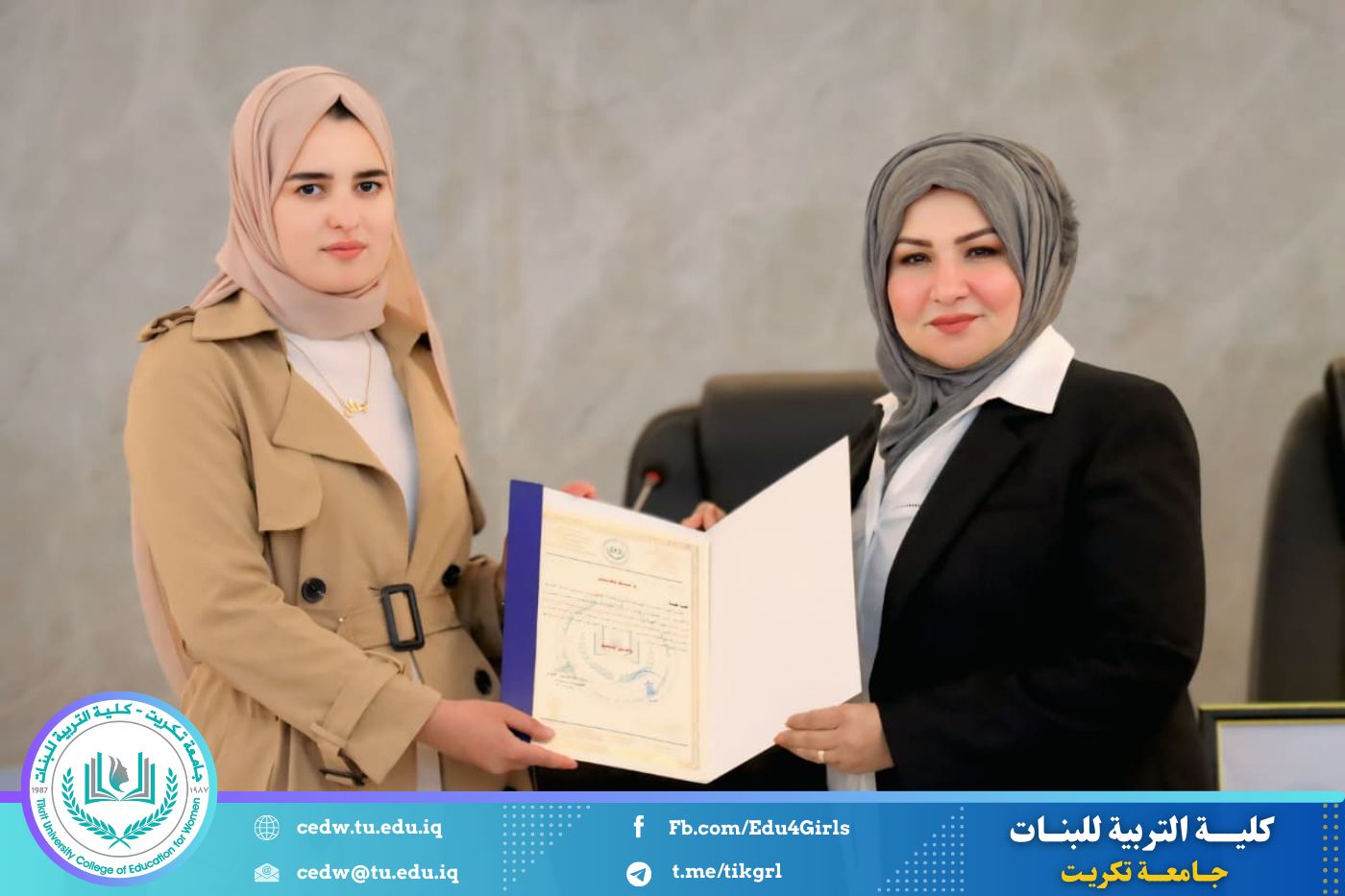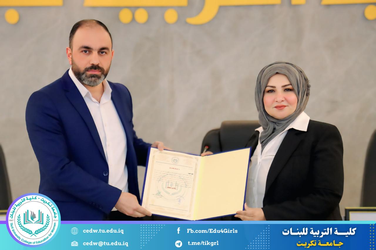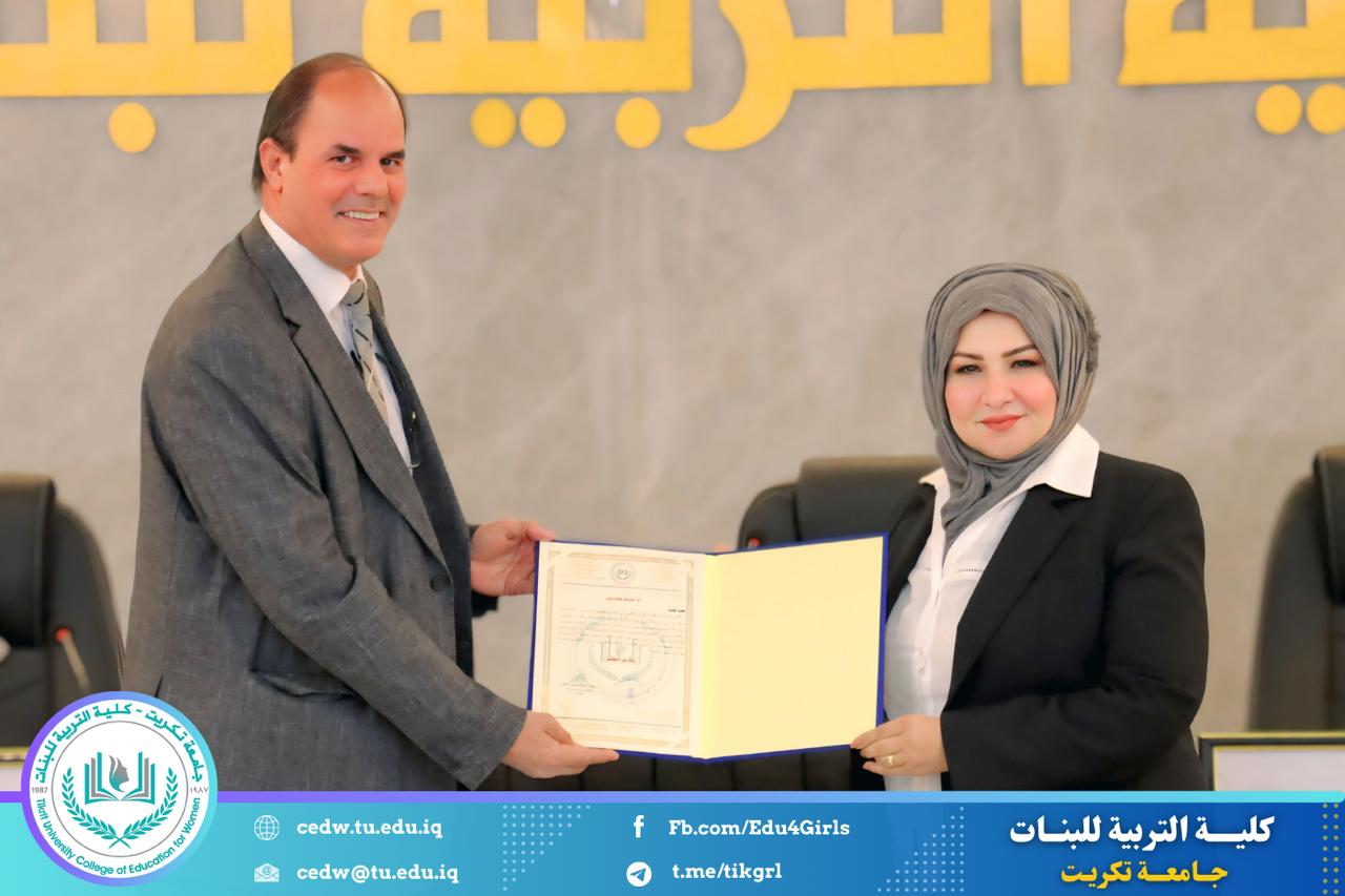 برعاية السيد رئيس جامعة تكريت الأستاذ الدكتور وعد محمود رؤوف، وبإشراف السيدة عميد كلية التربية للبنات الأستاذ الدكتورة نجلاء عبدالحسين عليوي، وبحضور السيد معاون رئيس الجامعة للشؤون العلمية الأستاذ الدكتور حسن حسين إبراهيم، والسيد مدير قسم الدراسات والتخطيط في جامعة تكريت الأستاذ الدكتور صالح حسن عبد الله، عقدت كلية التربية للبنات صباح اليوم الأربعاء الموافق ١١ آذار ٢٠٢٦ مؤتمرها العلمي السابع عشر لمناقشة بحوث التخرج لطلبة المرحلة الرابعة، وذلك على قاعة المرحوم الأستاذ الدكتور جايد زيدان، وتحت شعار (بحوث التخرج – دفعة رائدات المعرفة).