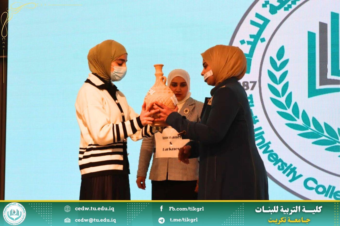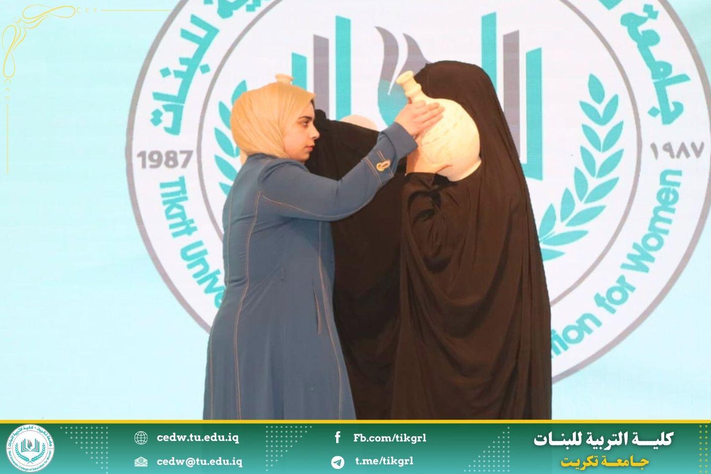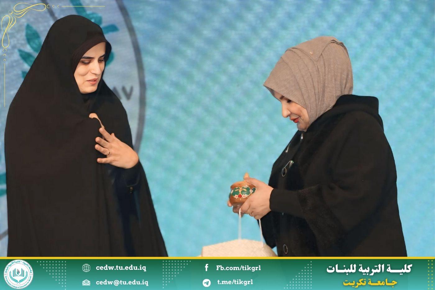 وفي ختام الزيارة، كرمت الدكتورة نجلاء المحمداوي الوفد الزائر بهدايا تقديرية ودروع ، وقد اهدت الدكتورة مريم الدكتورة نجلاء هدية تقديرية من صنع طالبات قسم الاقتصاد المنزلي في جامعة معصومة (عليها السلام) ، حيث أبدى الوفد وافر الشكر و الامتنان لكلية التربية للبنات ( جامعة تكريت) لمواقفها النبيلة و دعمها اللا متناهي للمسيرة التعليمية و الحركة الأكاديمية.