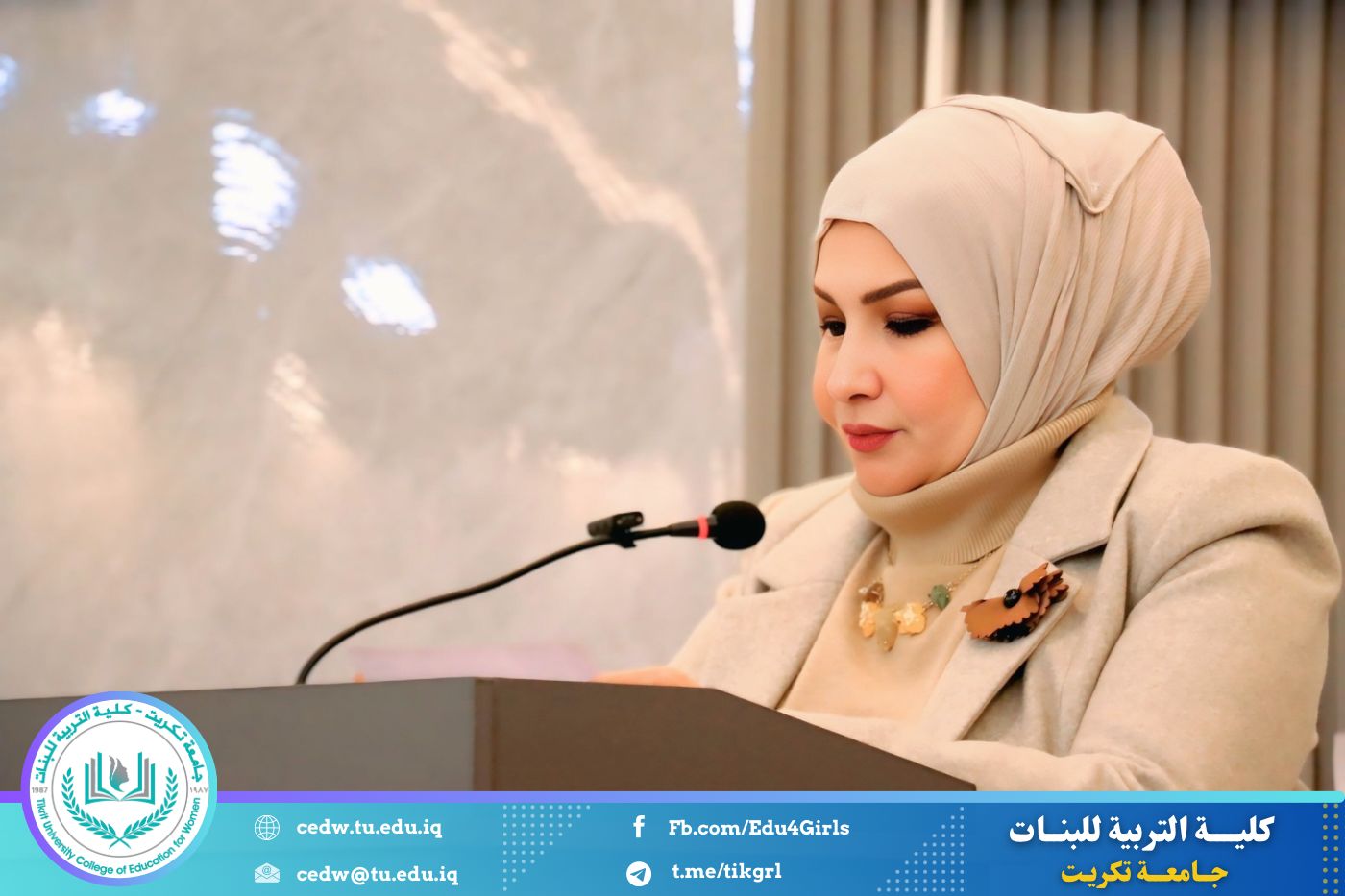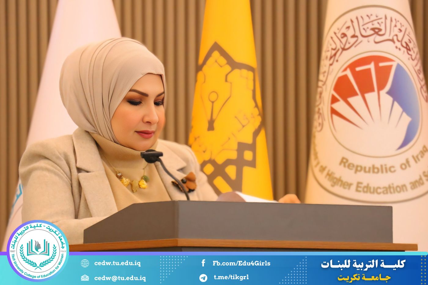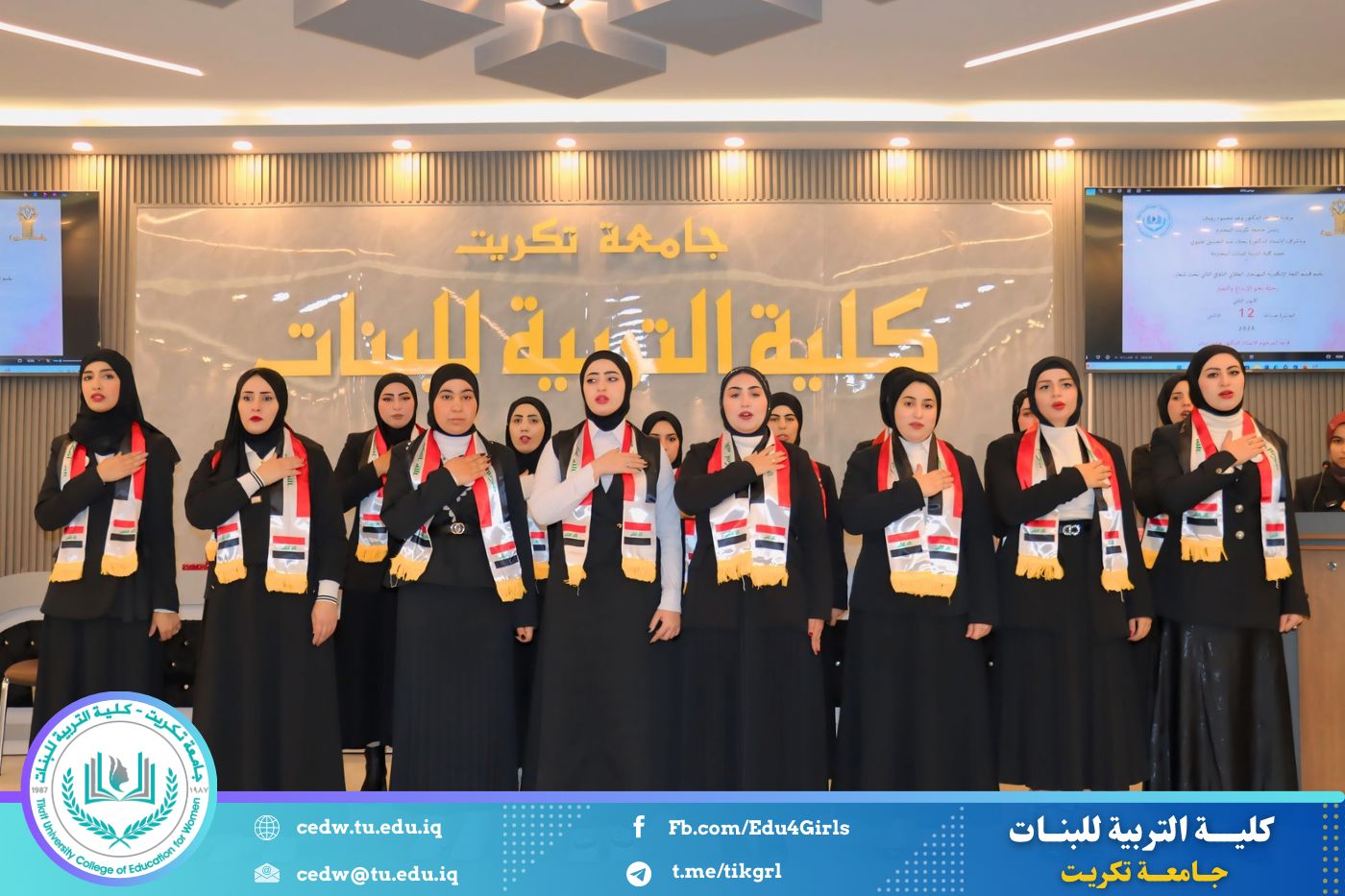 تحت شعار «رحلة نحو الإبداع والتميّز»، نظّم قسم اللغة الإنكليزية في كلية التربية للبنات – جامعة تكريت، صباح يوم الاثنين الموافق 12 / 1 / 2026، وعلى رحاب قاعة المرحوم الأستاذ الدكتور جايد زيدان، المهرجان الطلابي الثقافي الثاني للقسم، بحضور السيدة عميد كلية التربية للبنات الأستاذ الدكتورة نجلاء عبدالحسين عليوي، ومعاونتها للشؤون العلمية الأستاذ الدكتورة أشرف جمال محمود، ومعاونتها للشؤون الإدارية الأستاذ المساعد الدكتورة سلمى خالد ياسين، فضلًا عن عدد من السادة رؤساء الأقسام وأعضاء الهيئات التدريسية والطالبات.