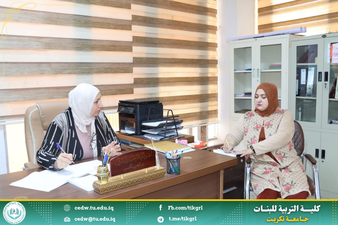 وقد حثت السيدة رئيس القسم جميع التدريسيين للاهتمام بجميع الطالبات ومراعاة الجوانب العلمية والسعي نحو تحقيق افضل النتائج