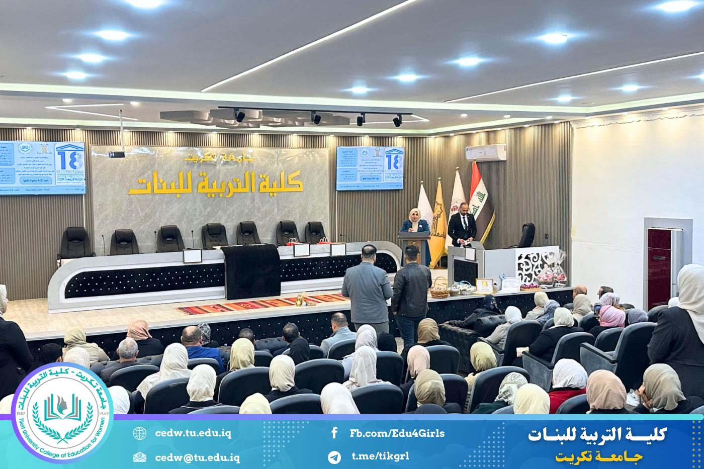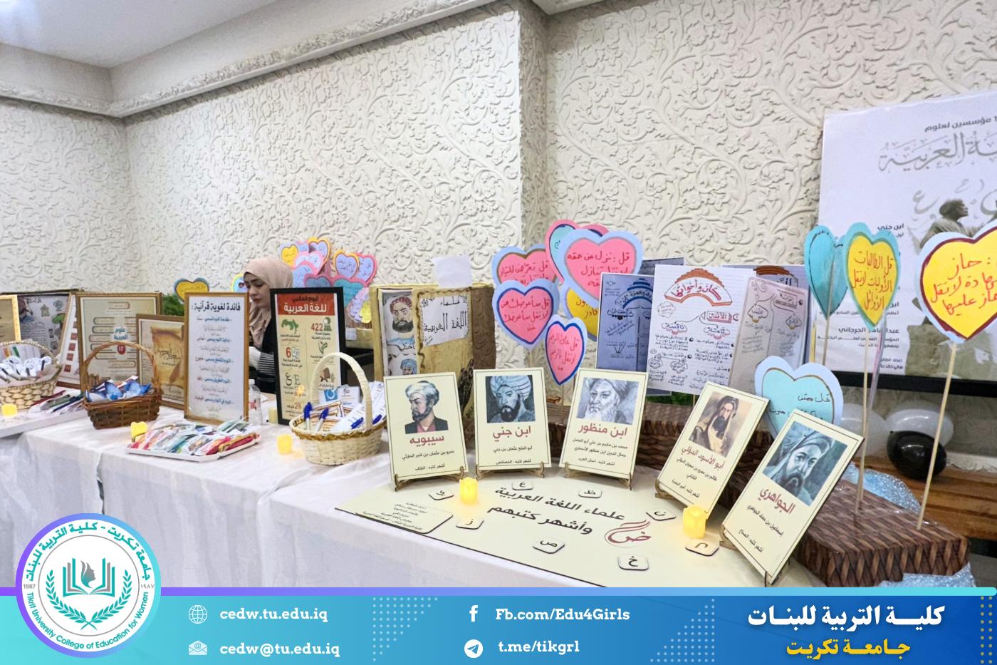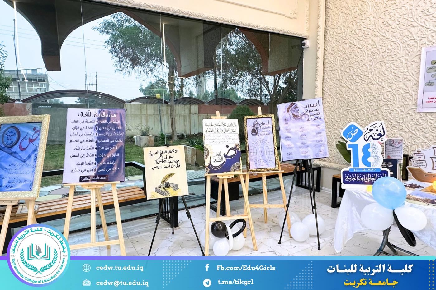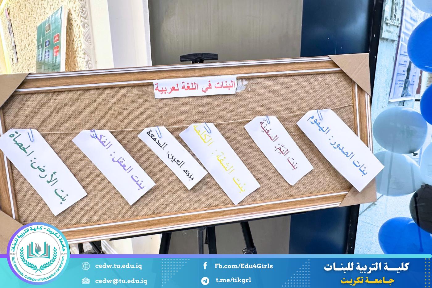 تحت شعار «تحيا الأمة بإحياء لغتها»، وبحضور السيدة عميد كلية التربية للبنات في جامعة تكريت الأستاذ الدكتورة نجلاء عبدالحسين عليوي، وبمشاركة معاون العميد للشؤون الإدارية الأستاذ الدكتورة سلمى خالد ياسين، وعدد من السادة رؤساء الأقسام والتدريسيين، نظّمت وحدة الإرشاد النفسي والتوجيه التربوي، بالتعاون مع قسم اللغة العربية، مهرجانًا ثقافيًا بمناسبة يوم الضاد، وذلك صباح يوم الثلاثاء الموافق ١٦ / ١٢ / ٢٠٢٥، على رحاب قاعة المرحوم الأستاذ الدكتور جايد زيدان.