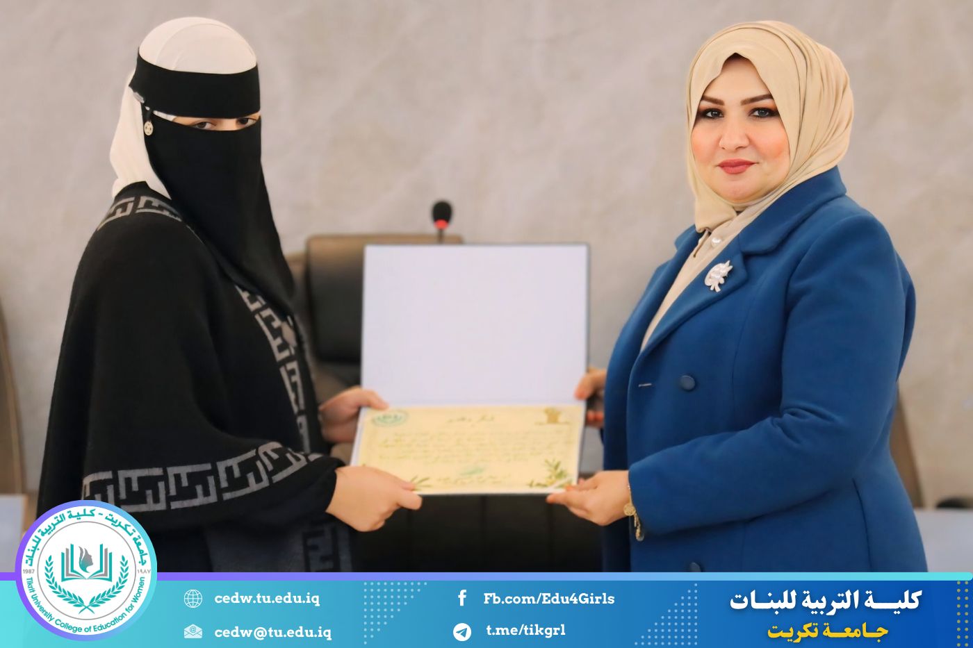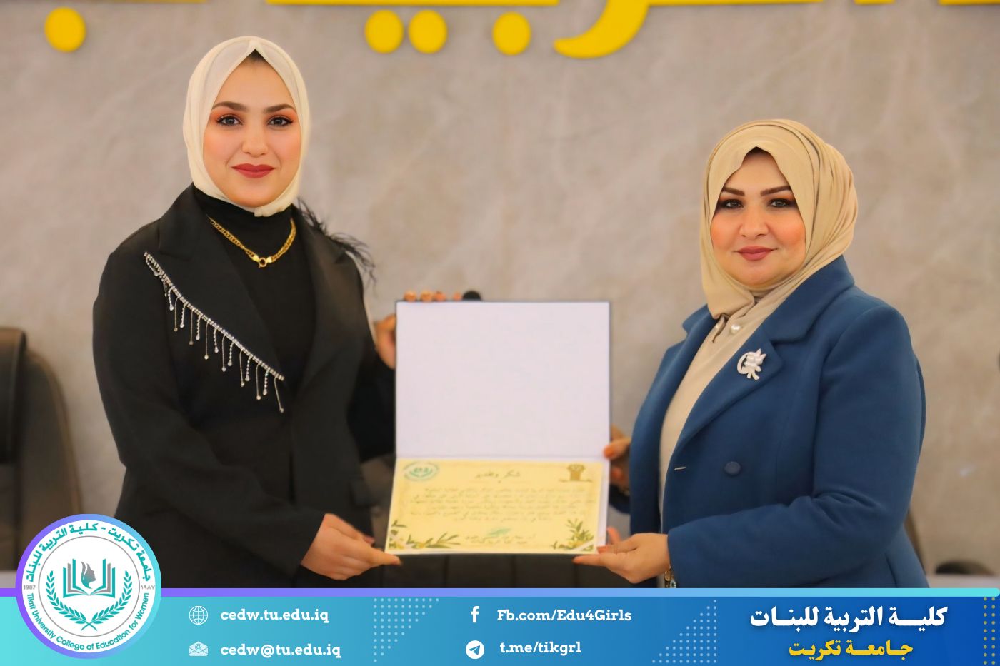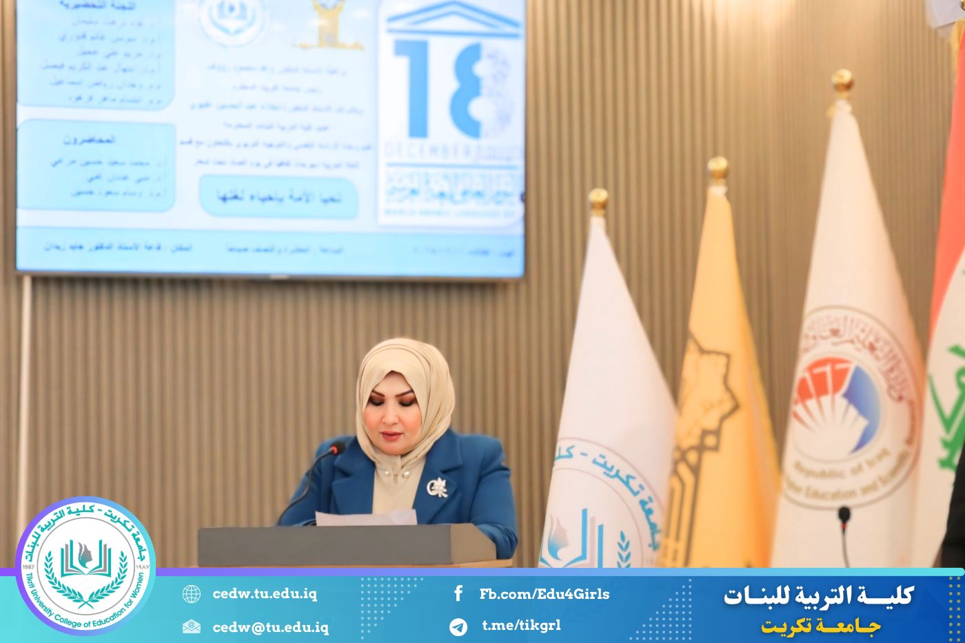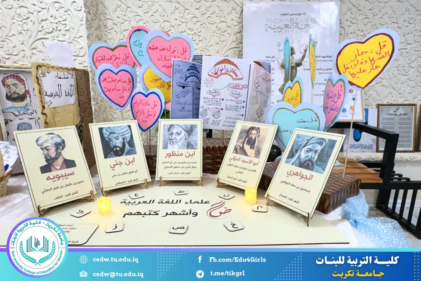 تحت شعار «تحيا الأمة بإحياء لغتها»، وبحضور السيدة عميد كلية التربية للبنات في جامعة تكريت الأستاذ الدكتورة نجلاء عبدالحسين عليوي، وبمشاركة معاون العميد للشؤون الإدارية الأستاذ الدكتورة سلمى خالد ياسين، وعدد من السادة رؤساء الأقسام والتدريسيين، نظّمت وحدة الإرشاد النفسي والتوجيه التربوي، بالتعاون مع قسم اللغة العربية، مهرجانًا ثقافيًا بمناسبة يوم الضاد، وذلك صباح يوم الثلاثاء الموافق ١٦ / ١٢ / ٢٠٢٥، على رحاب قاعة المرحوم الأستاذ الدكتور جايد زيدان.