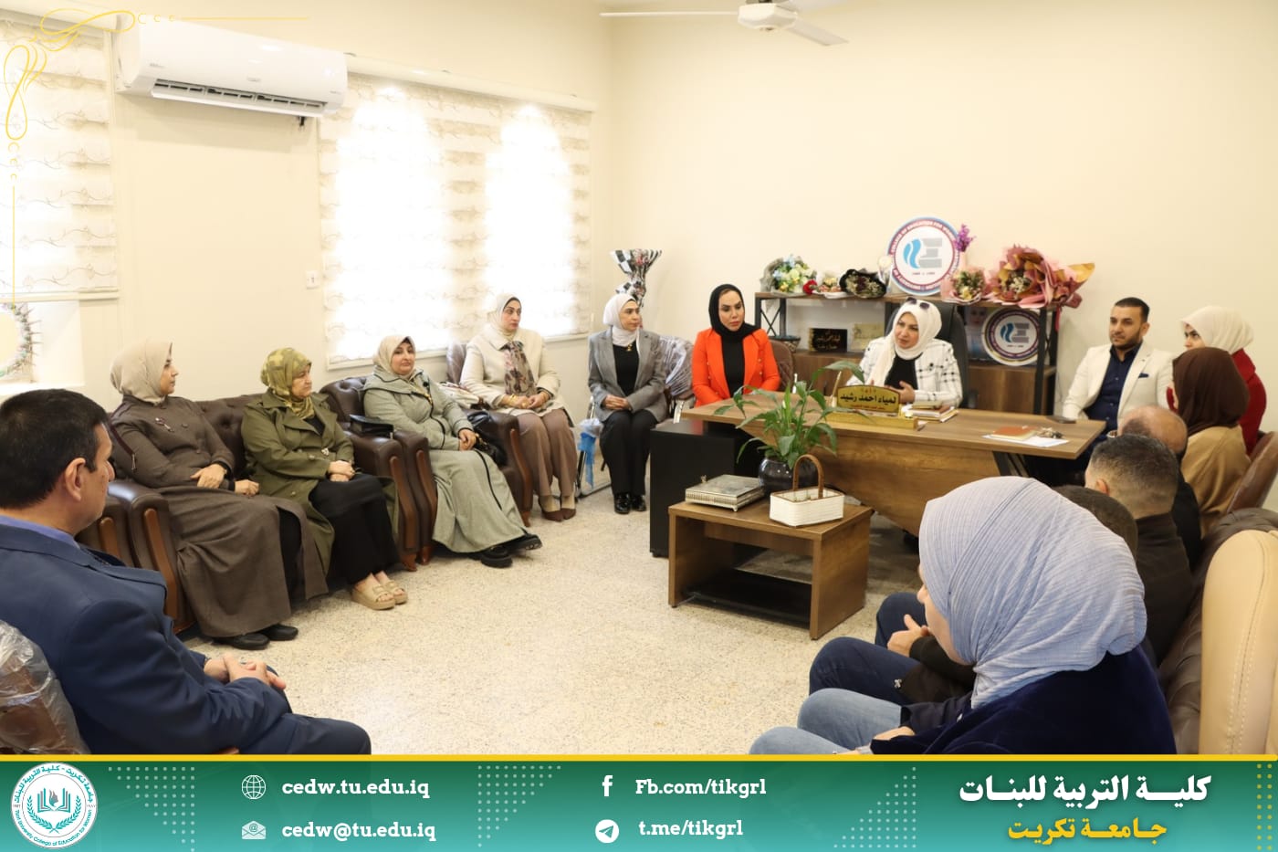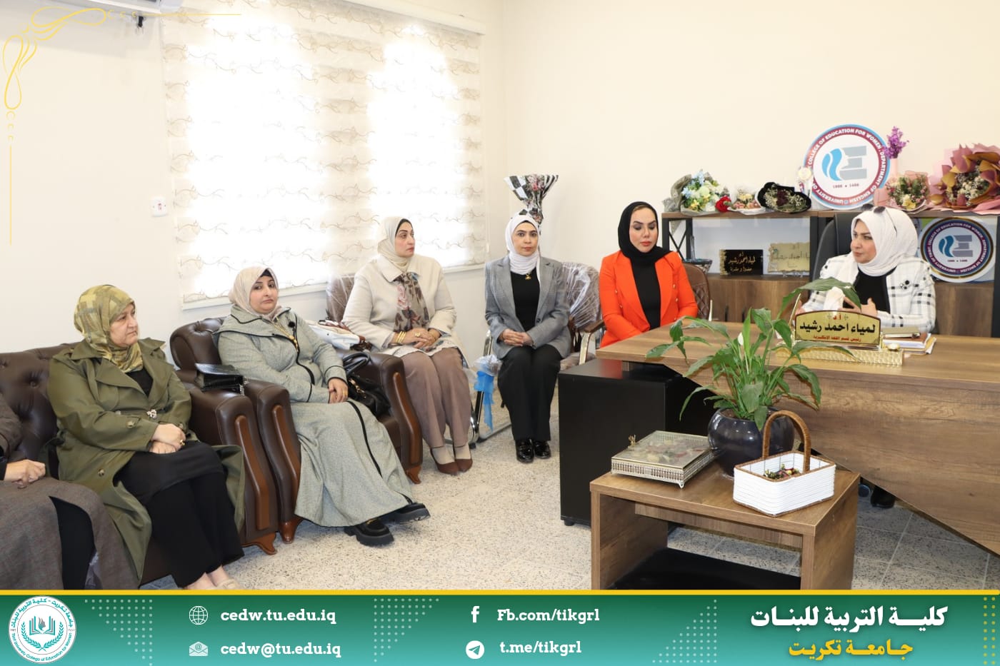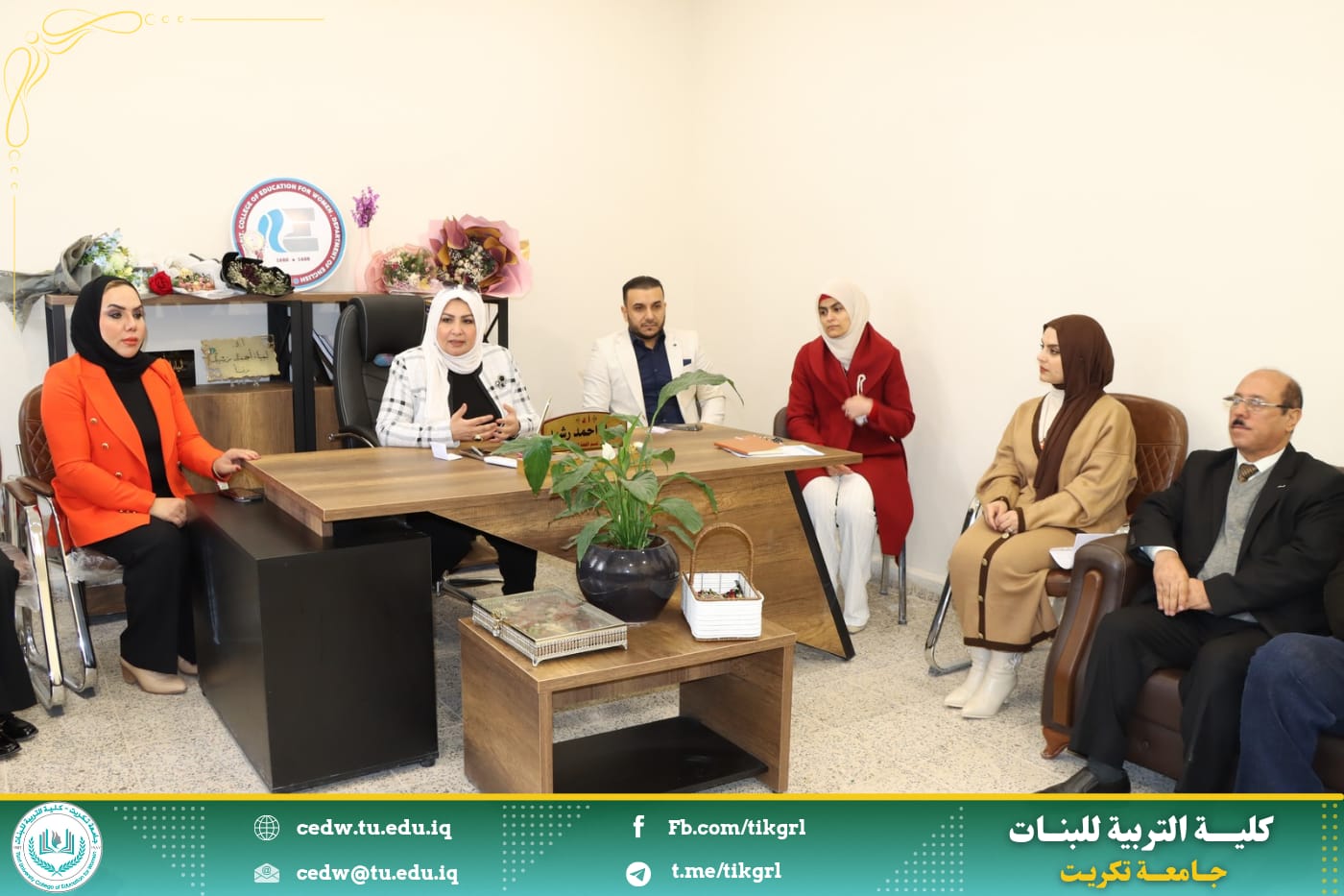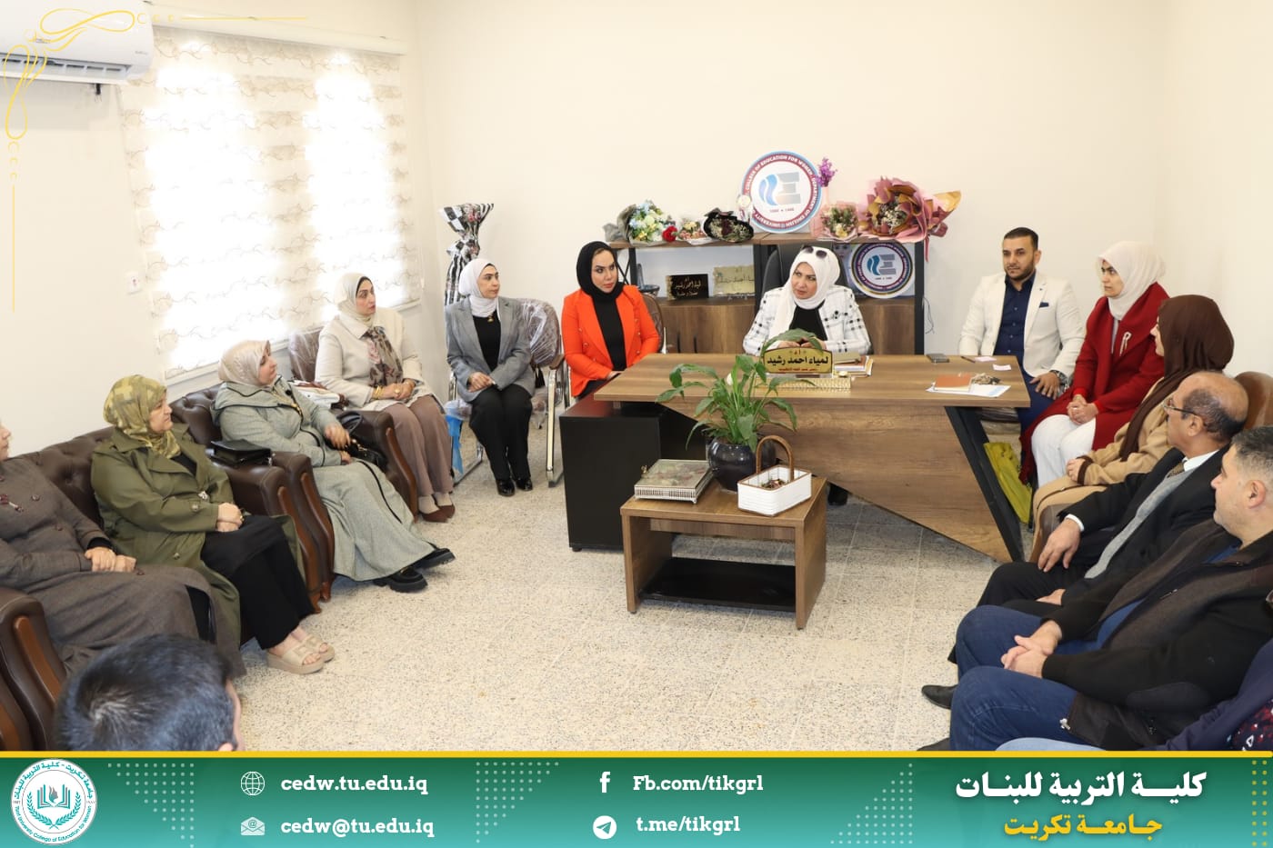 في بداية الاجتماع اشادت السيدة عميد الكلية بقسم اللغة الانكليزية بإعتباره ركيزة اساسية بين الاقسام العلمية في الكلية