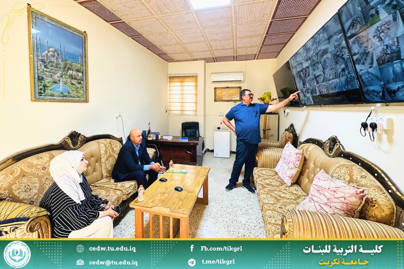 تفقدت الأستاذ الدكتورة نجلاء عبد الحسين عليوي، عميد كلية التربية للبنات، صباح اليوم الإثنين الموافق ١٢ أيار ٢٠٢٥، سير الامتحانات النهائية للفصل الدراسي الثاني، وذلك من خلال متابعة دقيقة عبر غرفة التحكم بكاميرات المراقبة المركزية في الكلية.