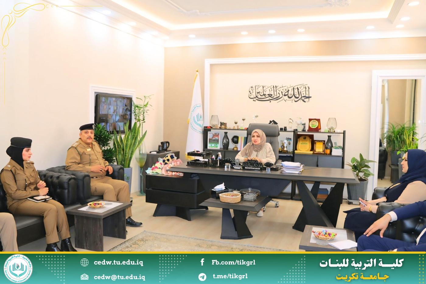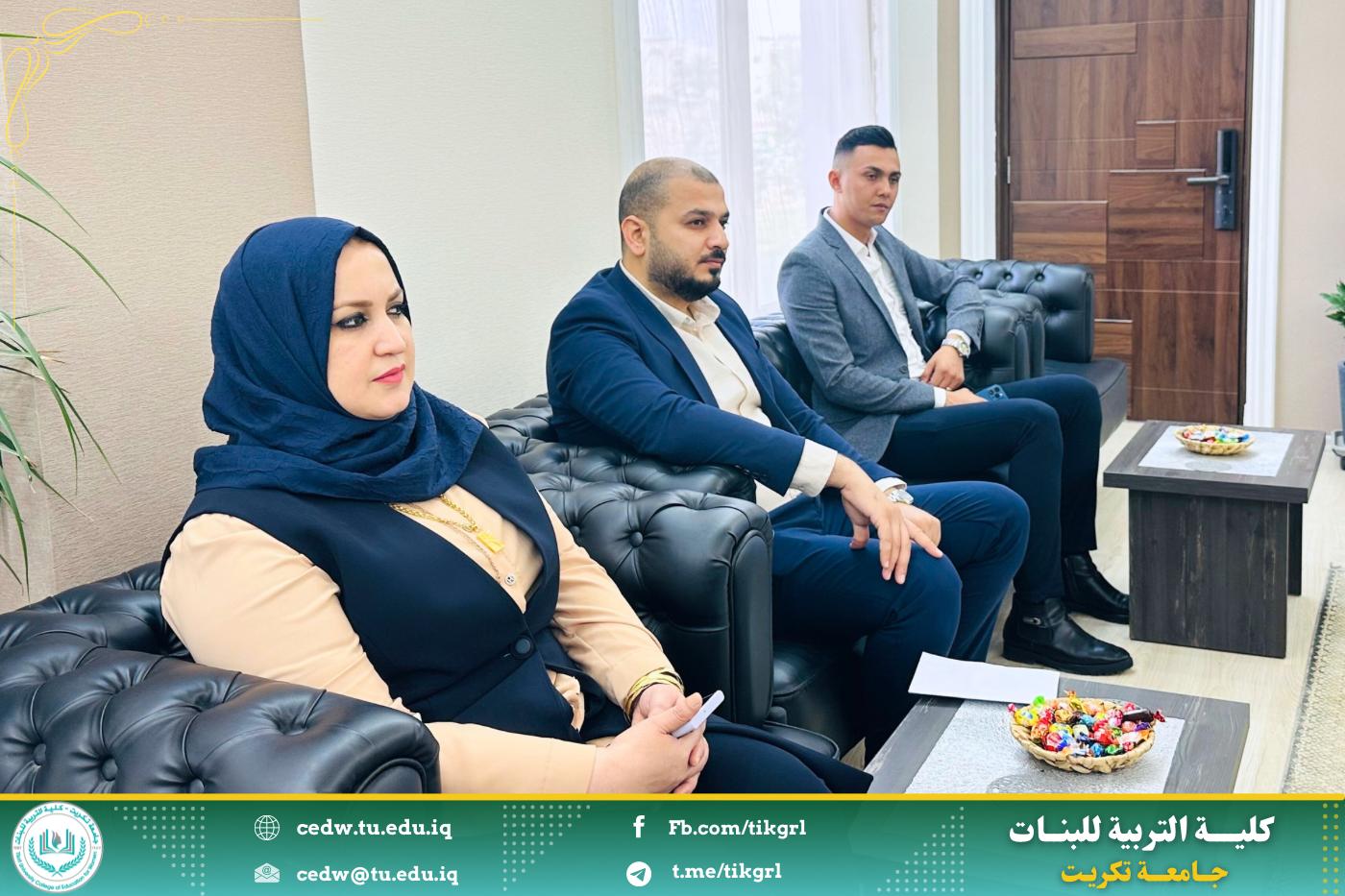في سياق دعم تمكين المرأة وتوسيع أدوارها ضمن مؤسسات الدولة، استقبلت الأستاذ الدكتورة نجلاء عبدالحسين عليوي، عميدة كلية التربية للبنات، صباح اليوم الأربعاء الموافق ١٤ أيار ٢٠٢٥، وفداً من قسم شؤون المرأة في محافظة صلاح الدين، برفقة معاون العميد للشؤون الإدارية، الأستاذ المساعد الدكتورة سلمى خالد ياسين، وعدد من أعضاء الهيئة التدريسية.
