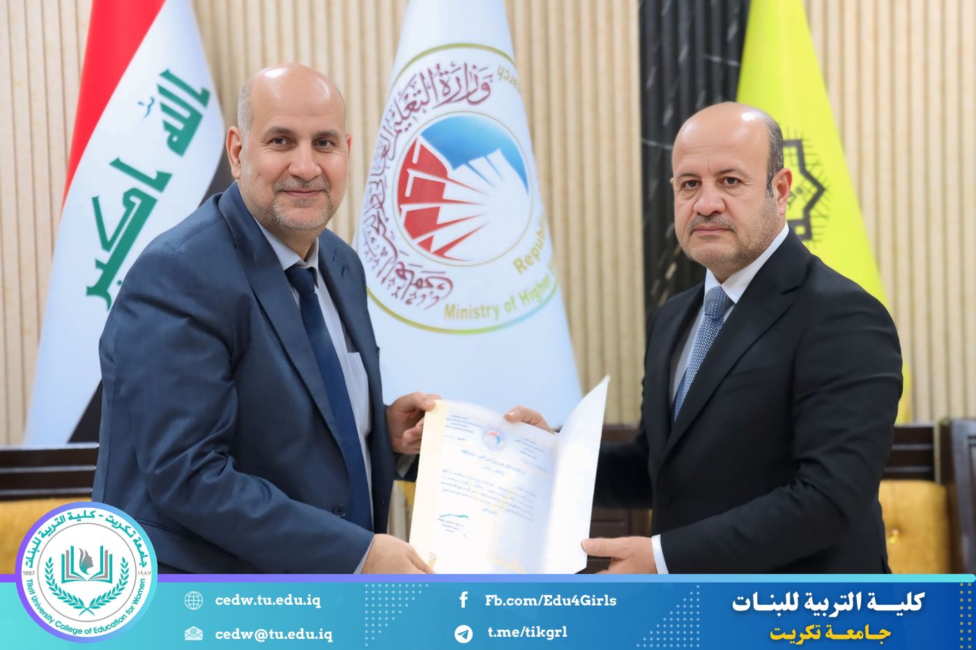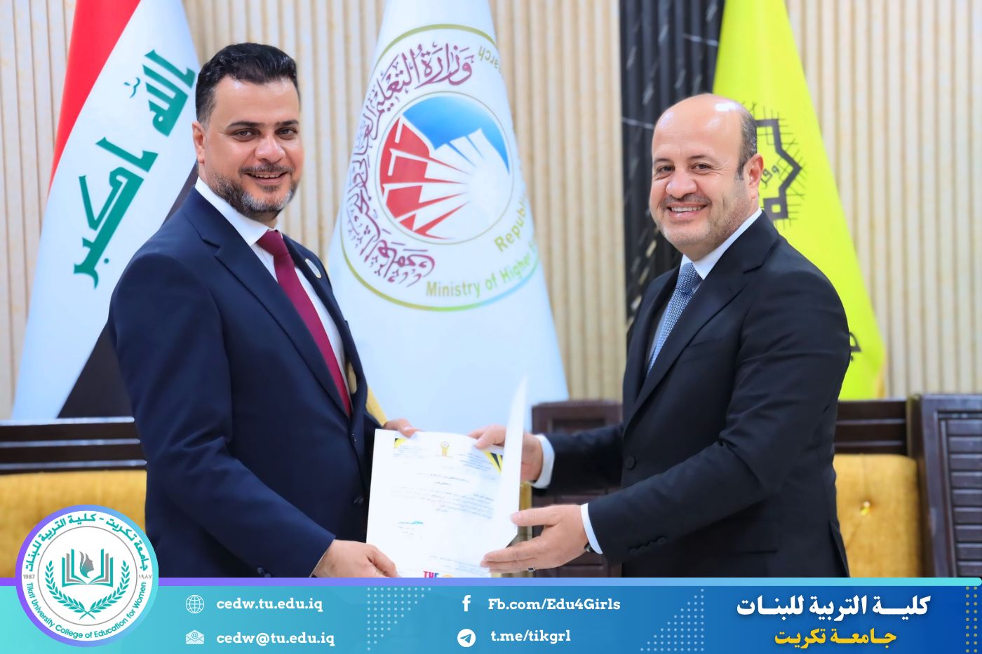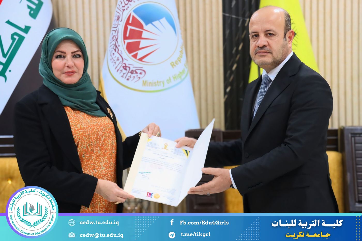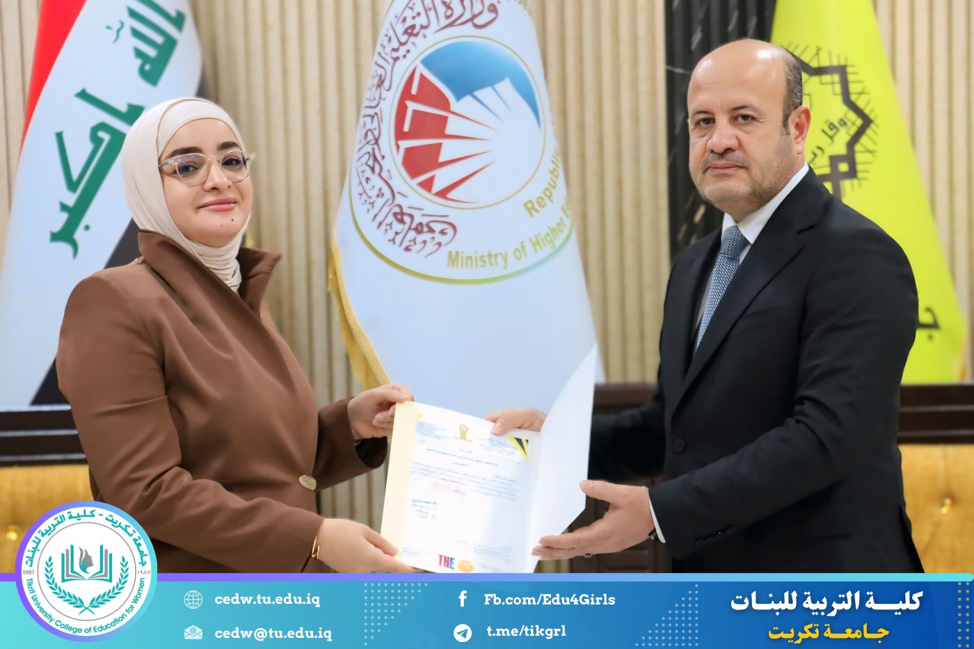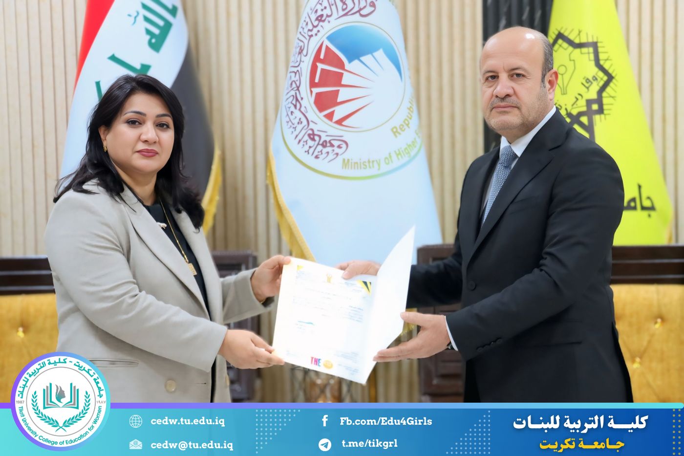 في إطار حرص جامعة تكريت على تعزيز معايير الجودة والارتقاء بمستوى الأداء الأكاديمي، حضرت الأستاذ الدكتورة نجلاء عبدالحسين عليوي، عميد كلية التربية للبنات، مراسم تكريم اللجان الوزارية الخاصة بالاعتماد الأكاديمي، التي أشرف عليها السيد رئيس الجامعة الأستاذ الدكتور وعد محمود رؤوف، والتي قامت بتقييم الواقع الأكاديمي في كليتي التربية للعلوم الإنسانية والتربية للبنات.