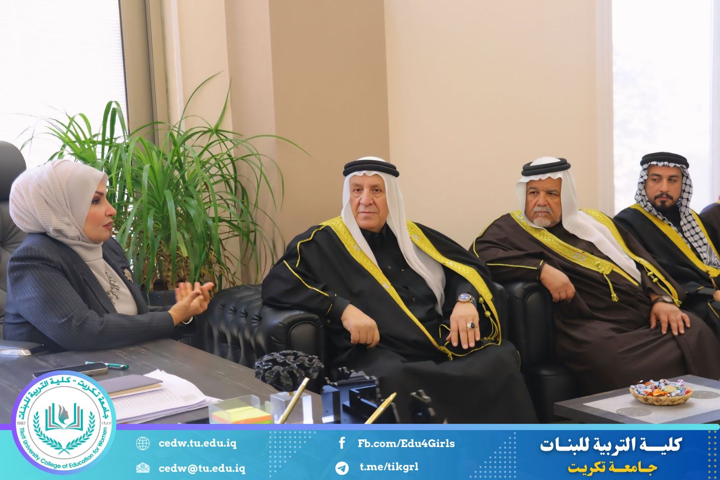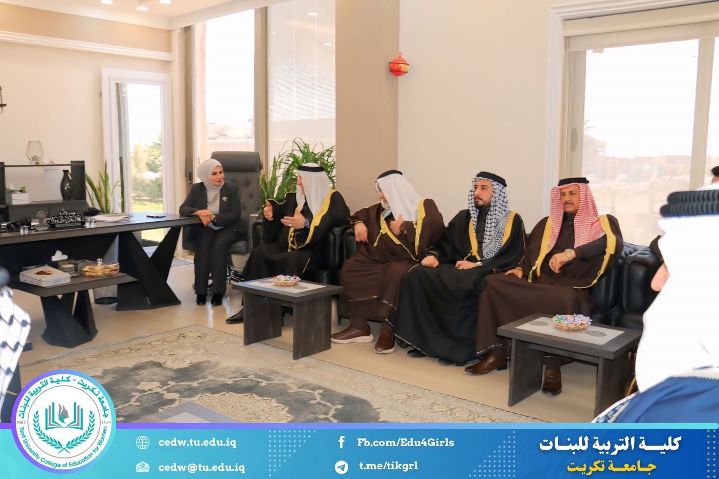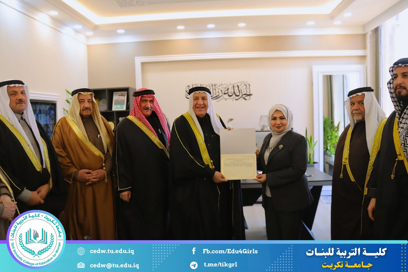 في إطار تعزيز أواصر التعاون والتلاحم المجتمعي، وتشجيع المبادرات الداعمة للمسيرة العلمية والتربوية، تشرفت كلية التربية للبنات في جامعة تكريت باستقبال وفد كريم من شيوخ ووجهاء مجلس عشائر صلاح الدين، الذين قاموا بزيارة رسمية إلى الكلية، جرى خلالها تكريم السيدة عميد الكلية الأستاذ الدكتورة نجلاء عبد الحسين المحمداوي، تقديرًا لجهودها العلمية والإدارية المتميزة، وإسهاماتها البارزة في الارتقاء بالواقع الأكاديمي والتربوي.