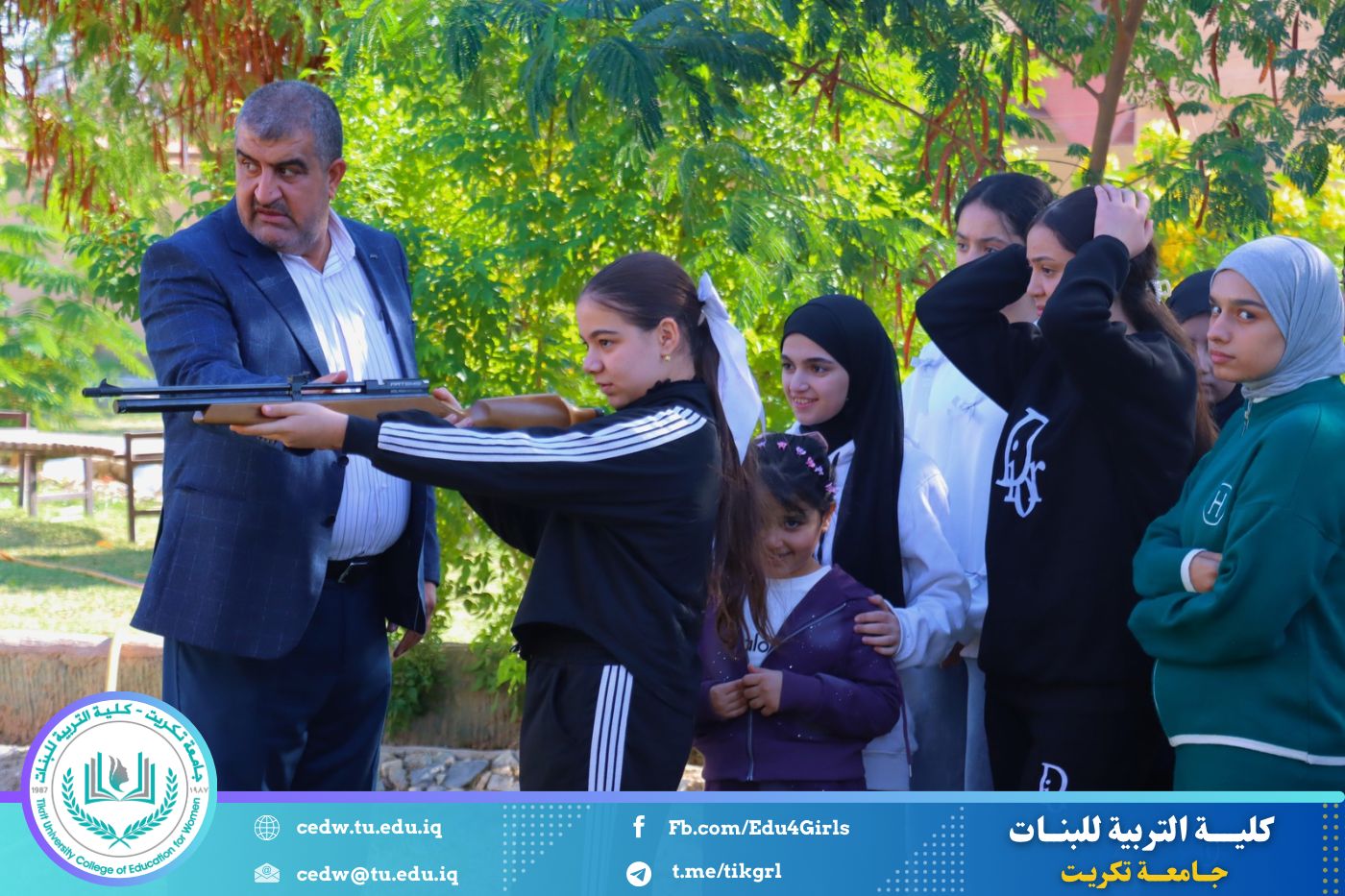 برعاية السيدة عميد كلية التربية للبنات الأستاذ الدكتورة نجلاء عبد الحسين عليوي، نظّم قسم النشاطات الطلابية في الكلية بطولة للرماية بالبندقية الهوائية، وذلك صباح اليوم الأربعاء الموافق (19 / 11 / 2025)، على حدائق كلية التربية للبنات، وبمشاركة واسعة من التدريسيين والموظفين وطالبات عدد من مدارس محافظة صلاح الدين.