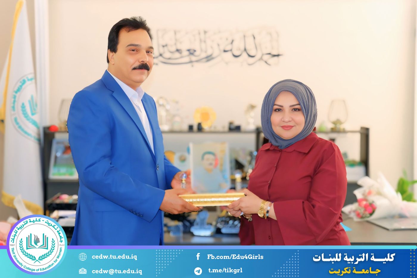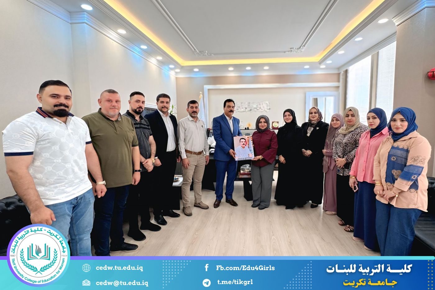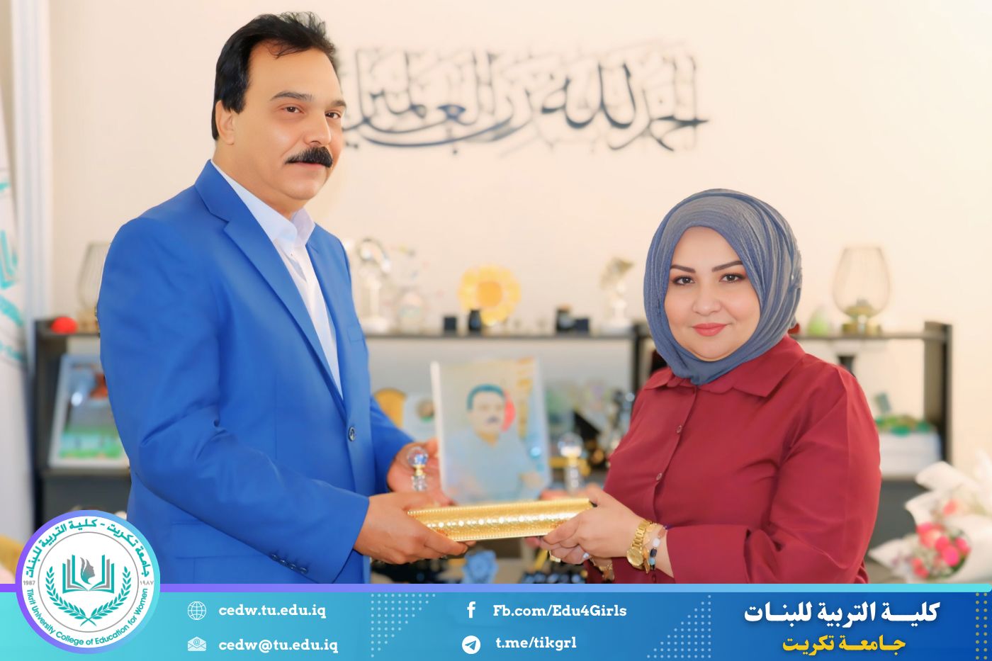 أقامت كلية التربية للبنات، يوم الاربعاء لموافق (10/ 9 / 2025)، مراسم تكريم للسيد مزيد جاسم محمد، مدير الشؤون المالية في الكلية، وذلك بمناسبة إحالته إلى التقاعد، برعاية وحضور السيدة عميد الكلية الأستاذ الدكتورة نجلاء عبدالحسين عليوي.