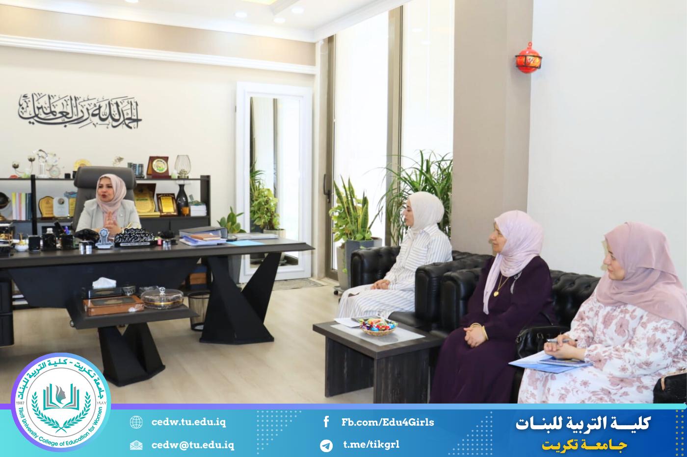 عقدت الأستاذ الدكتورة نجلاء عبد الحسين عليوي، عميد كلية التربية للبنات – جامعة تكريت، اجتماعاً مع عدد من التدريسيين المعنيين بملف مجانية التعليم، وذلك يوم الثلاثاء الموافق 2 / 9 / 2025 في عمادة الكلية.
