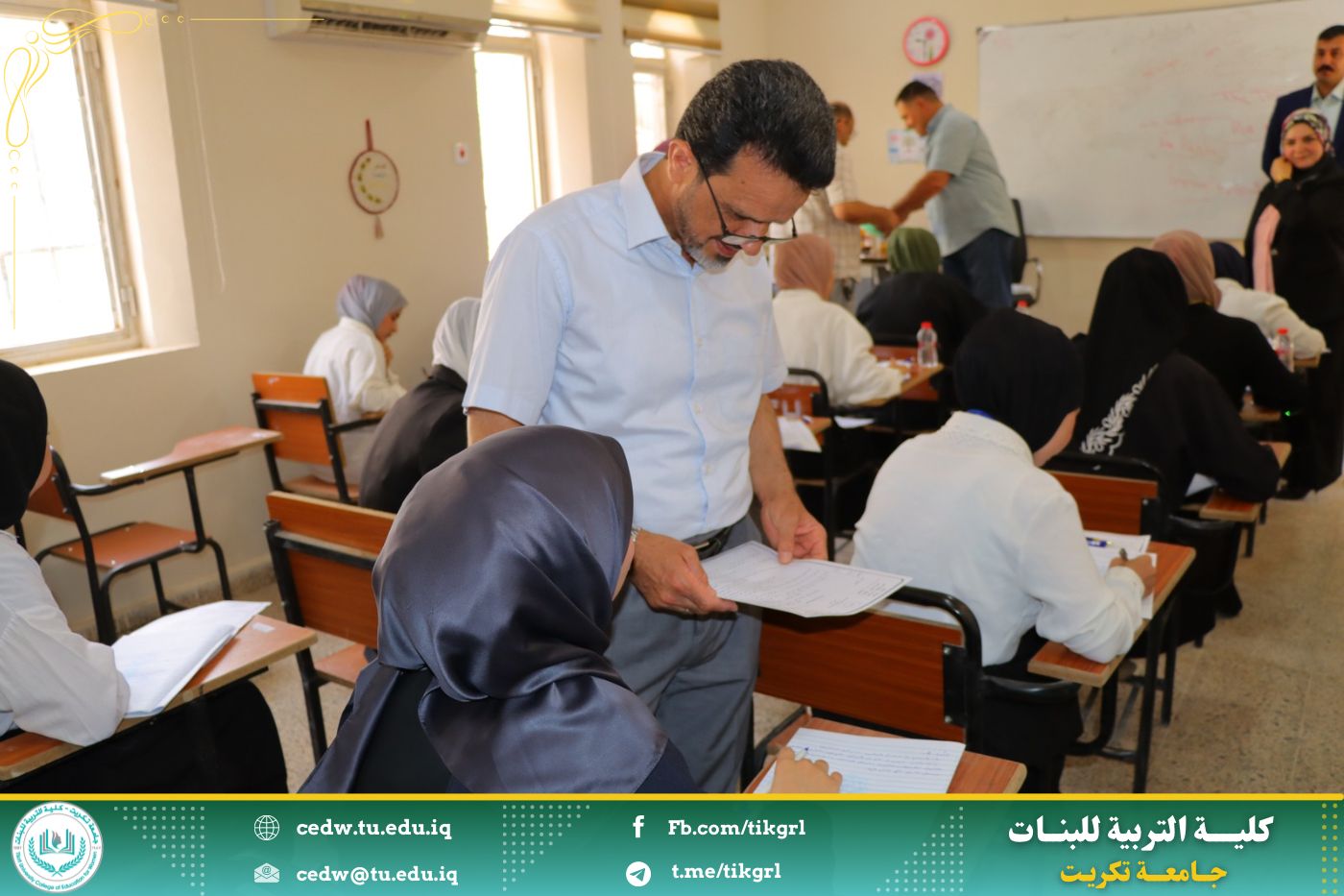 في إطار حرص جامعة تكريت على ضمان جودة العملية الامتحانية وخلق بيئة أكاديمية ملائمة للطلبة، قامت اللجنة المركزية لمتابعة سير الامتحانات بزيارة تفقدية إلى كلية التربية للبنات صباح يوم الاثنين الموافق ١٩ أيار ٢٠٢٥.