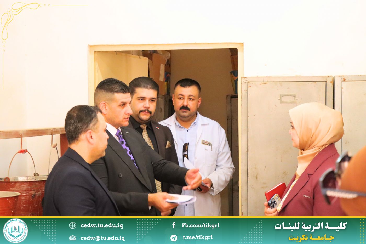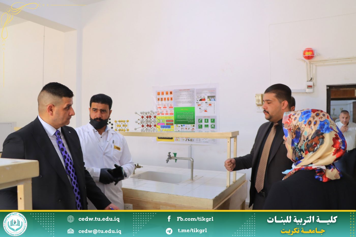 استقبلت كلية التربية للبنات – جامعة تكريت، صباح اليوم الخميس الموافق ١٩ حزيران ٢٠٢٥، لجنة السلامة والأمن الكيميائي والبايولوجي والإشعاعي التابعة لدائرة البحث والتطوير في وزارة التعليم العالي، في زيارة ميدانية هدفت إلى تقييم واقع السلامة المهنية والإجراءات الوقائية المعتمدة داخل المختبرات العلمية في الكلية.