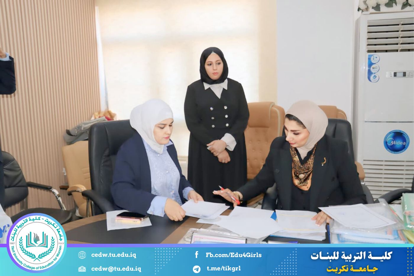 استقبلت كلية التربية للبنات بجامعة تكريت، صباح يوم الأحد الموافق ٢ تشرين الثاني ٢٠٢٥، وفد اللجنة المركزية لتقييم الأداء الوظيفي التابعة لرئاسة الجامعة، وذلك ضمن جولاتها الميدانية الهادفة إلى تدقيق استمارات أداء التدريسين للعام الدراسي ٢٠٢٤–٢٠٢٥.