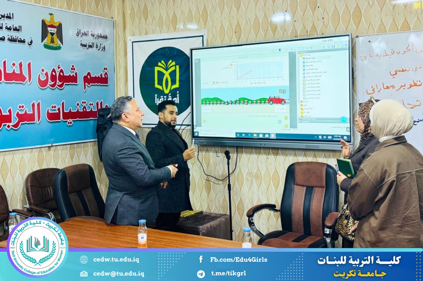 في إطار سعيها إلى تعزيز الشراكة المؤسسية وتطوير المهارات العملية لدى الطالبات، نظّمت مسؤول وحدة التأهيل والتوظيف والمتابعة في كلية التربية للبنات، م.د. هالة هاشم دحام، وبمشاركة م.م. طيبة كامل محمود، زيارة ميدانية إلى قسم المناهج والتقنيات التربوية في مديرية تربية صلاح الدين.