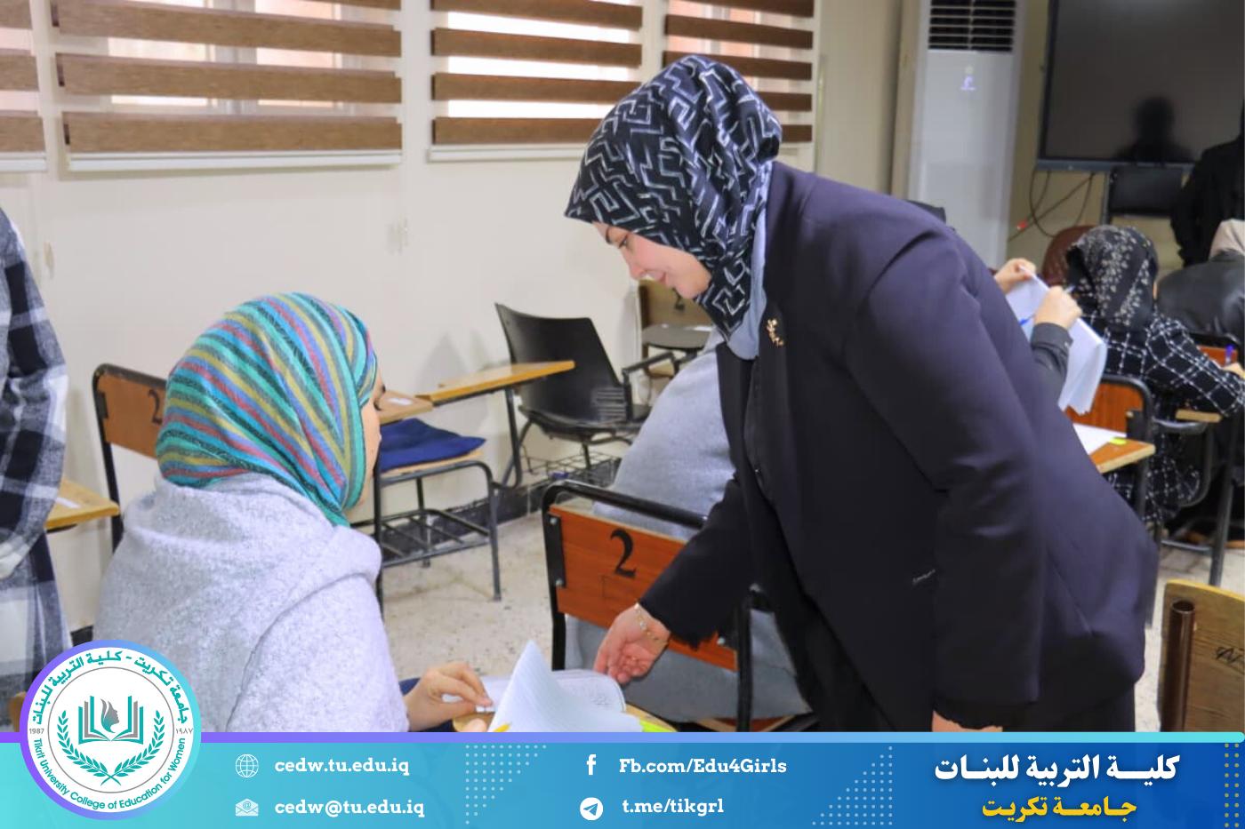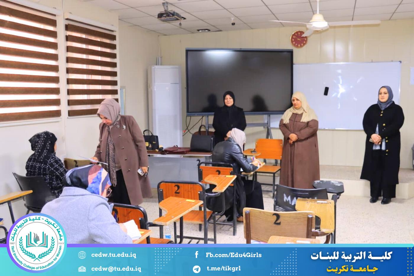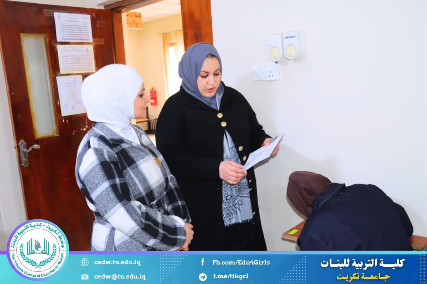 وشملت الجولة التفقدية زيارة القاعات واللجان الامتحانية في الأقسام العلمية والإنسانية، حيث حرصت عميد الكلية على متابعة آلية أداء الامتحانات والتأكد من تهيئة أجواء مناسبة للطالبات، وضمان توفر كافة المستلزمات الضرورية لإجراء الامتحانات بسلاسة.