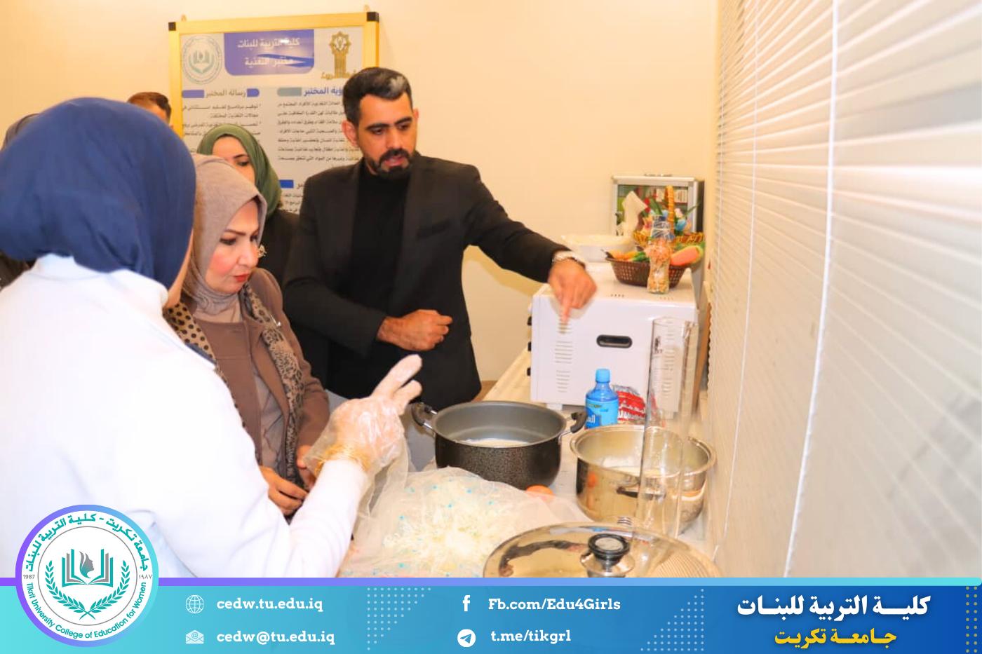 رافقها في الجولة الأستاذة المساعدة الدكتورة سلمى خالد ياسين، معاون العميد للشؤون الإدارية، بالإضافة إلى المدرس شهد خالد حميد، رئيس قسم الاقتصاد المنزلي، وعدد من أعضاء الهيئة التدريسية بالقسم. حيث شملت الجولة زيارة المختبرات العلمية ومتابعة التجارب العملية التي تقوم بها الطالبات ضمن المناهج الدراسية.