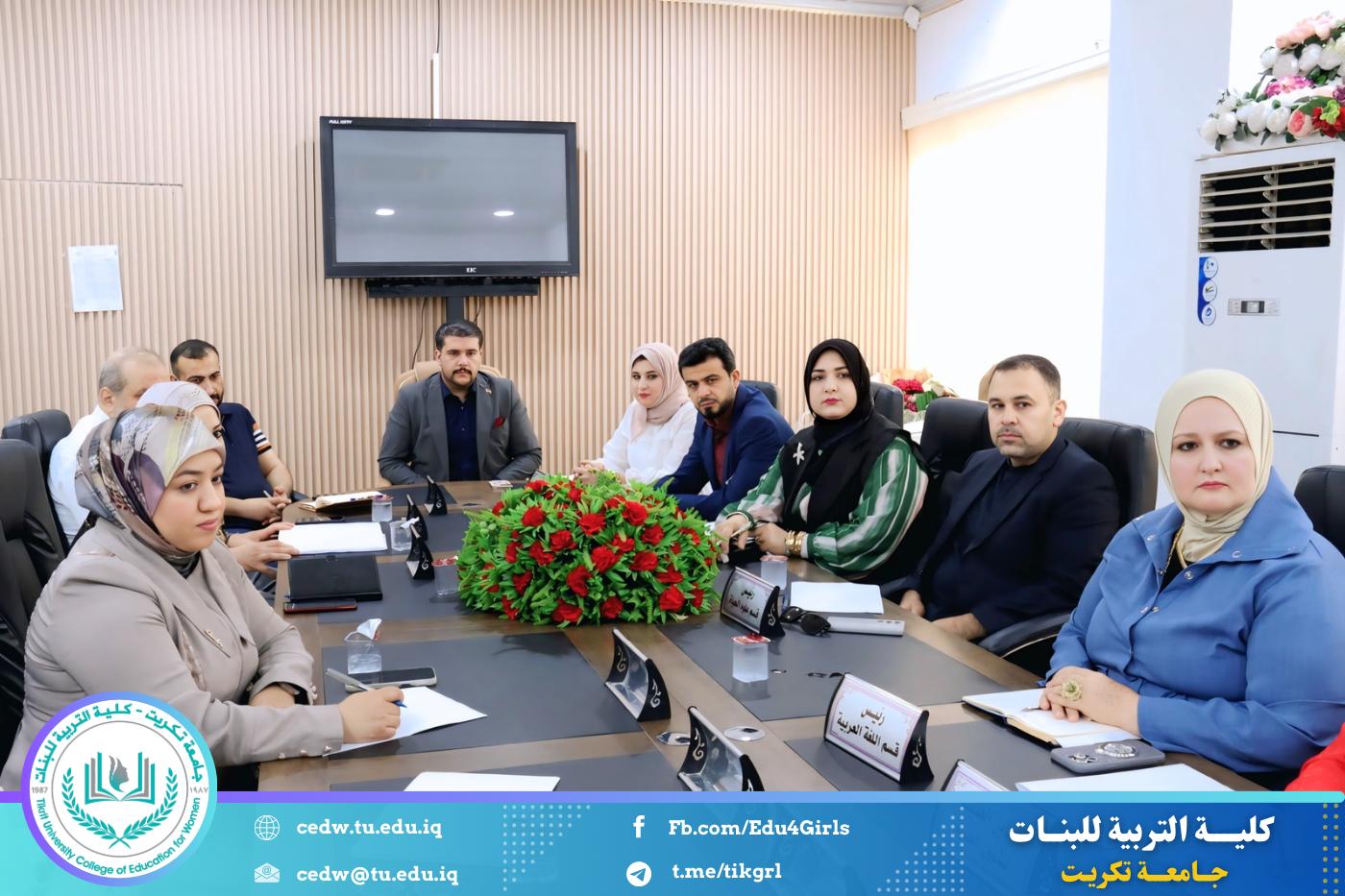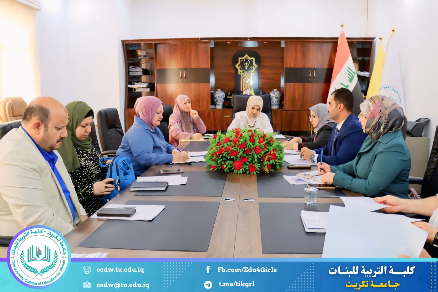 واختتمت السيدة العميد الاجتماع مؤكدة على ضرورة مضاعفة الجهود والعمل بروح الفريق الواحد، بما يعزز من مكانة الكلية ويسهم في توفير بيئة جامعية محفزة للطلبة والتدريسيين على حد سواء
