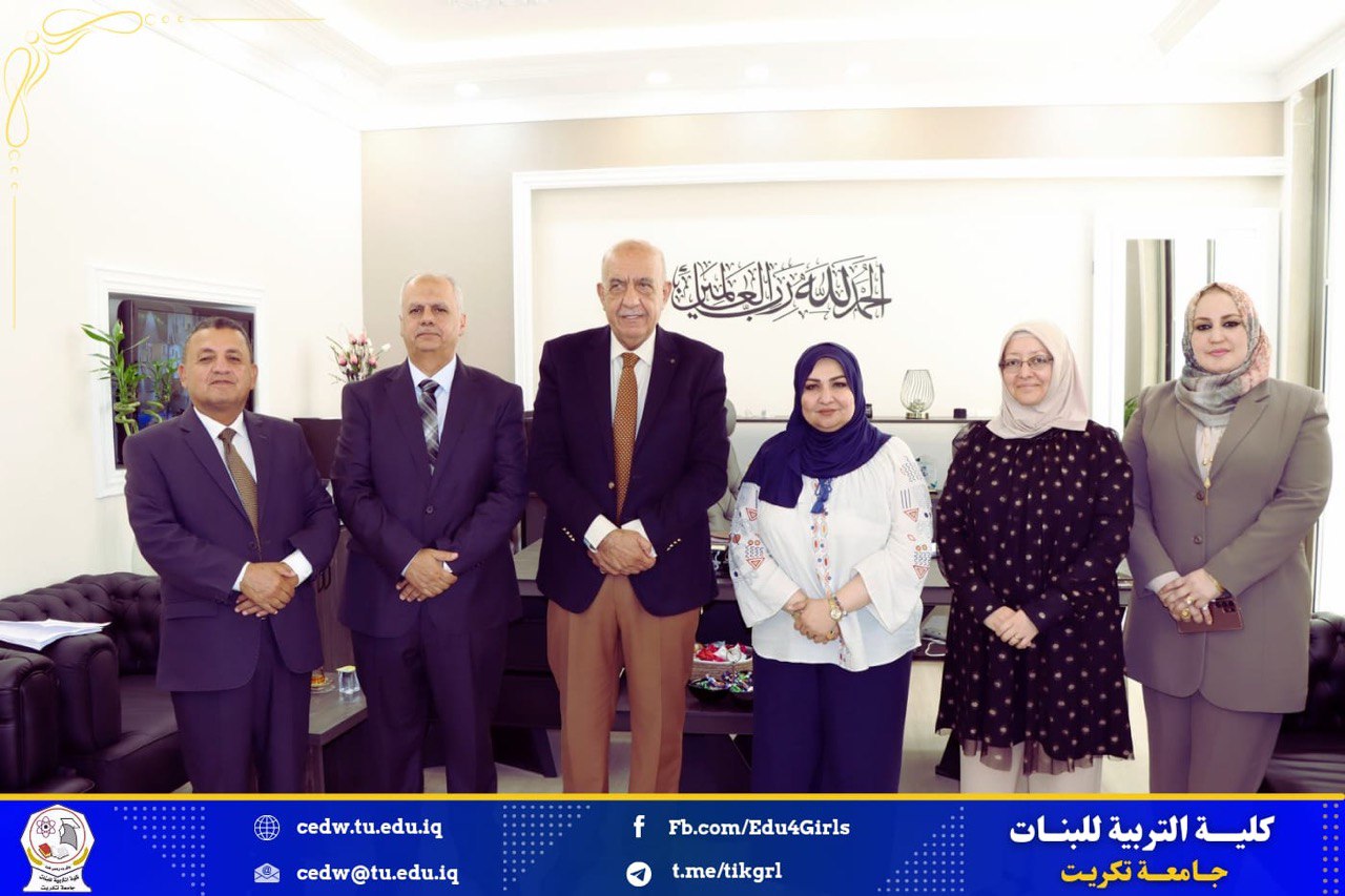 استضافت كلية التربية للبنات جامعة تكريت صباح اليوم الاثنين الموافق ٢٠٢٤/١٠/١٤ اللجنة الوزارية المكلفة بمتابعة عمل وحدات الإرشاد النفسي والتوجيه التربوي في الكليات