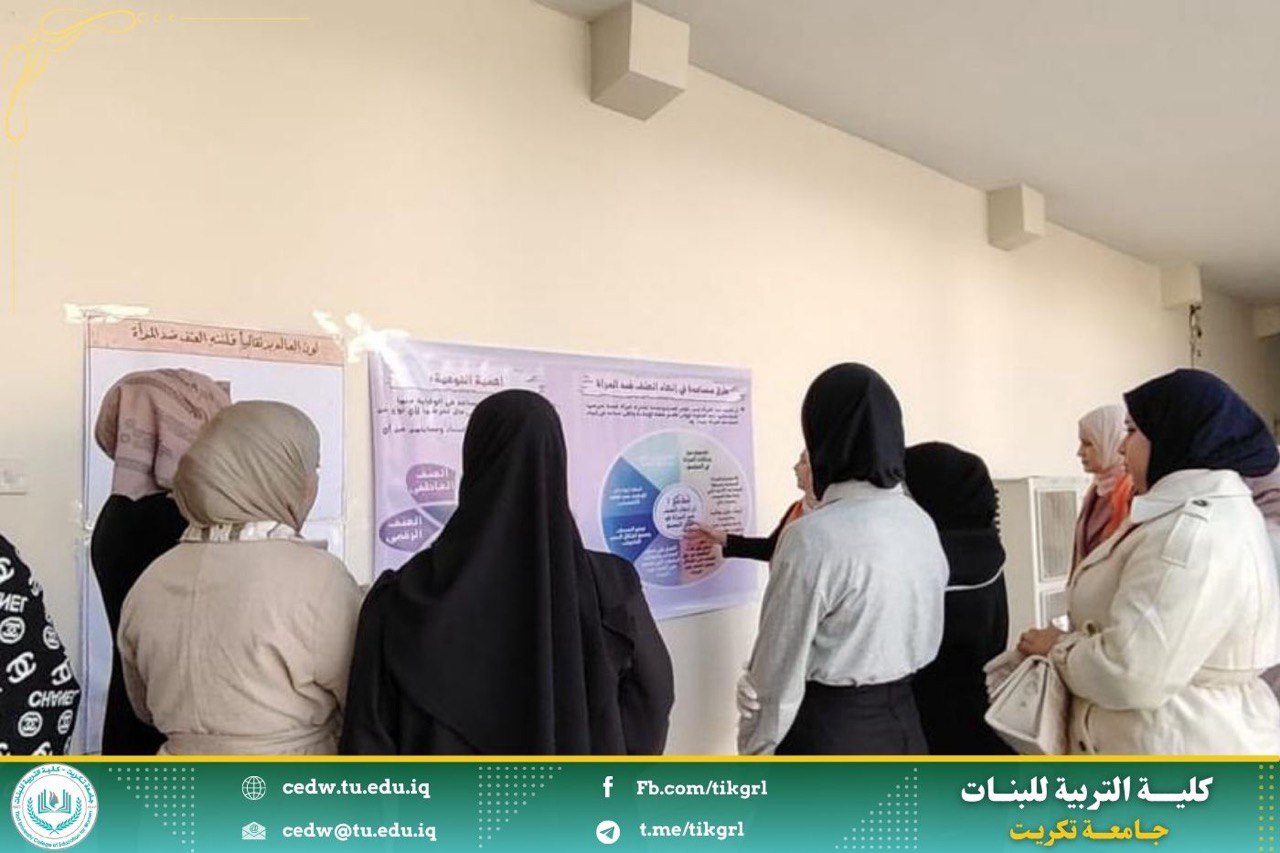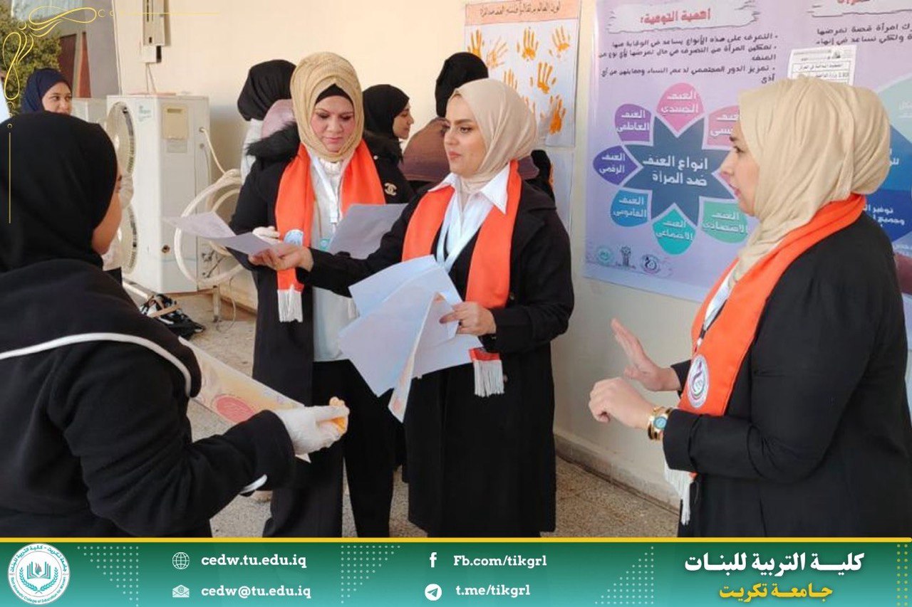 تحت إشراف السيدة عميد كلية التربية للبنات الاستاذ الدكتورة نجلاء عبدالحسين عليوي قامت وحدة شؤون المرأة في الكلية بتنفيذ وقائع اليوم الثاني للمؤتمر لمناهضة العنف ضد المرأة، في اليوم الاثنين الموافق 9/ 12/ 2024