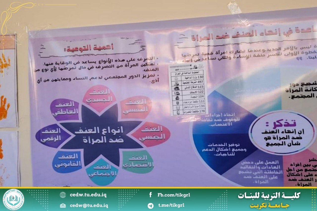 وذلك لابراز دور الجامعة كونهاا مؤسسة علمية تعليمية تحت شعار (خلق ثقافة تقول لا للعنف ضد المراة ) في اطار تعزيز الوعي لمناهضة العنف ضد المرأة