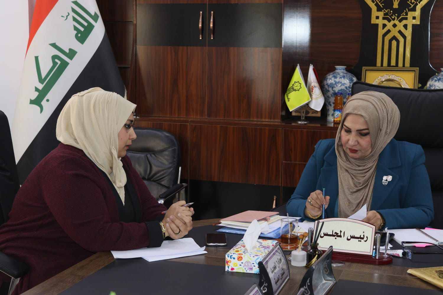 اجتمعت السيدة عميد كلية التربية للبنات الاستاذ الدكتور نجلاء عبدالحسين عليوي مع مسؤولة وحدة تمكين المراة الاستاذ المساعد الدكتور سروة عبدالقادر يوم الاربعاء الموافق ٢٤/ ١/ ٢٠٢٤ تمحور الاجتماعيات حول تشكيل فريق يعمل على وضع خطط من اجل تطوير مهارات الطالبات وتمكينهم في مجالات متعددة فضلا عن القيام بعدد من الانشطة والفعاليات داخل الكلية والجامعة والمجتمع على حد سواء حيث تهدف هذه النشاطات لرفع الوعي المجتمعي اتجاه المرآة والذي يهدف الى النهوض بالواقع الاقتصادي والاجتماعي والسياسي .