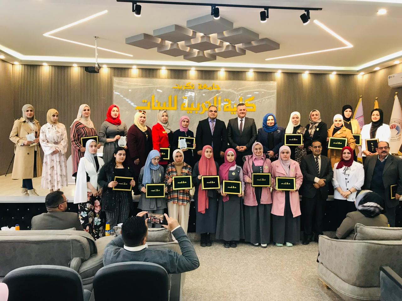 برعاية الأستاذ الدكتور وعد محمود رؤوف المحترم رئيس جامعة تكريت وبإشراف الأستاذ الدكتور نجلاء عبدالحسين عليوي المحترمة عميد كلية التربية للبنات اقامت وحدة تمكين المرأة في كلية التربية للبنات وبالتعاون مع دار الأبداع للطباعة والنشر في صلاح الدين حفل لتكريم المشاركات في مسابقة القصة القصيرة للإناث في يوم الاحد الموافق ٢٥/ ٢/ ٢٠٢٤ على رحاب قاعة القادسية وتحت شعار ( بأيديهن يصنعن الحياة مبدعات نون النسوة سطورهن نور على نور سيدات القلم والحضور ).