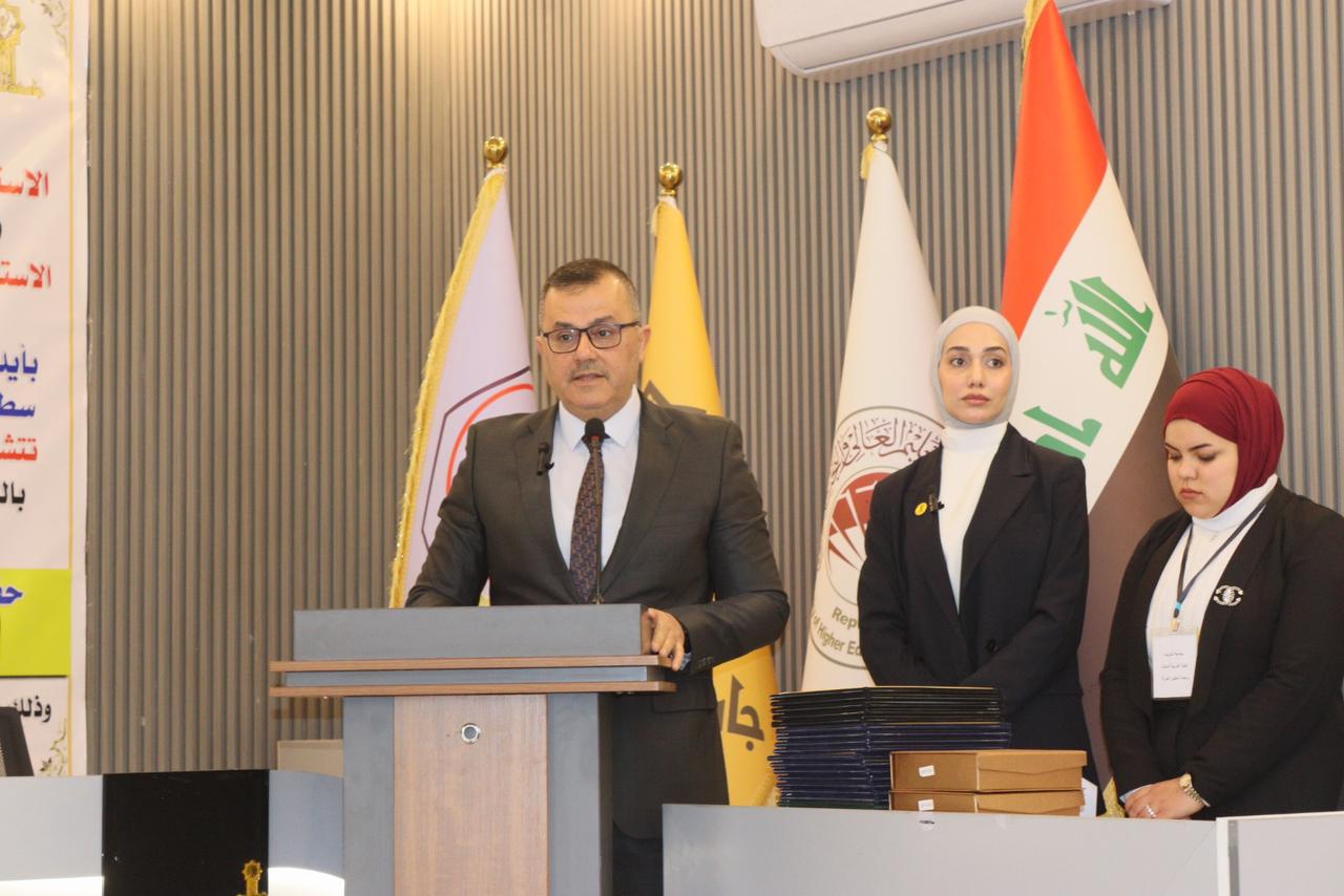 تميز الحفل بحضور مساعد رئيس جامعة تكريت للشؤون العلمية لاستاذ الدكتور حسن حسين ابراهيم و السيد عميد كلية التربية للعلوم الانسانية الاستاذ الدكتور عماد حميد احمد ومدير دار الابداع للطباعة والنشر السيد اسامة محمد صادق ومسؤول شعبة تمكين المرأة المدرس الدكتور عبير دهام كاظم وعدداً من قامات التعليم حيث كان في استقبالهم السيدة عميد كلية التربية للبنات الاستاذ الدكتور نجلاء عبدالحسين عليوي والسادة المعاونين وبعض كادر هيئة التدريس والكادر الاداري في الكلية