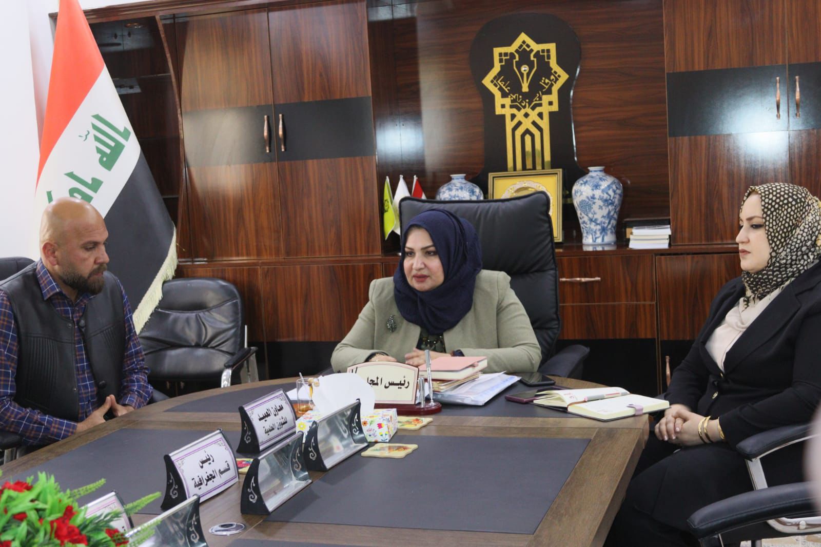 عقدت السيدة عميد كلية التربية للبنات الاستاذ الدكتور نجلاء عبدالحسين عليوي أجتماعاً مع كادر شعبة الصيانة بحضور المعاون الاداري الاستاذ المساعد الدكتور سلمى خالد ياسين وذلك في يوم الاحد بتاريخ ١١/ ٢/ ٢٠٢٤ على قاعة مجلس الكلية وجاء هذا الاجتماع حرصاً من سيادتها لتقديم افضل الخدمات والحفاظ على جمالية الكلية ، نص الاجتماع على بحث الحلول والمعوقات التي تواجه سير العمل وانشاء خطة عمل للسنة الجديدة وكذلك متابعة سير الادرايات الخاصة بالشعبة والتي تشكل عامل مهم في سرعة انجاز العمل لخلق جو مناسب وملائم لسير العملية التعليمية في الكلية وفي نهاية الاجتماع شكرت السيدة عميد الكلية موظفي شعبة الصيانة لجهودهم المبذولة وعملهم المستمر في الكلية متمنيه لهم الموفقية والنجاح الدائم