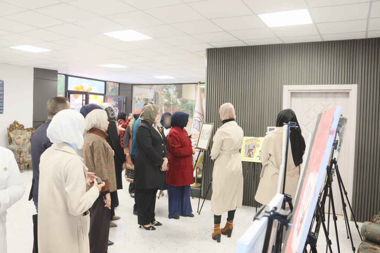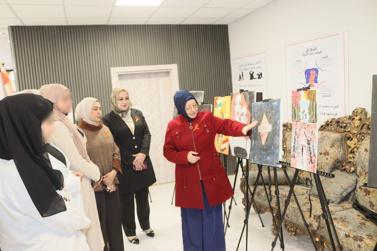 تضمن المعرض عرض لوحات فنية من نتاجات الطلبة وبأشراف المعاون العلمي الاستاذ الدكتور انتصار غانم عبد الوهاب والمعاون الاداري الاستاذ المساعد الدكتور سلمى خالد ياسين ، جسدت اللوحات المشكلات التي تتعرض لها المرأة حول العالم من تقييد حرياتها وحرمانها من التعليم وزواج القاصرات والعنف المنزلي وقد ركز المعرض على قضايا المرأة العديدة ومنها العنف بمختلف أشكاله وكيف له أن يؤخر تقدم المجتمع و يُفسد أستقراره .