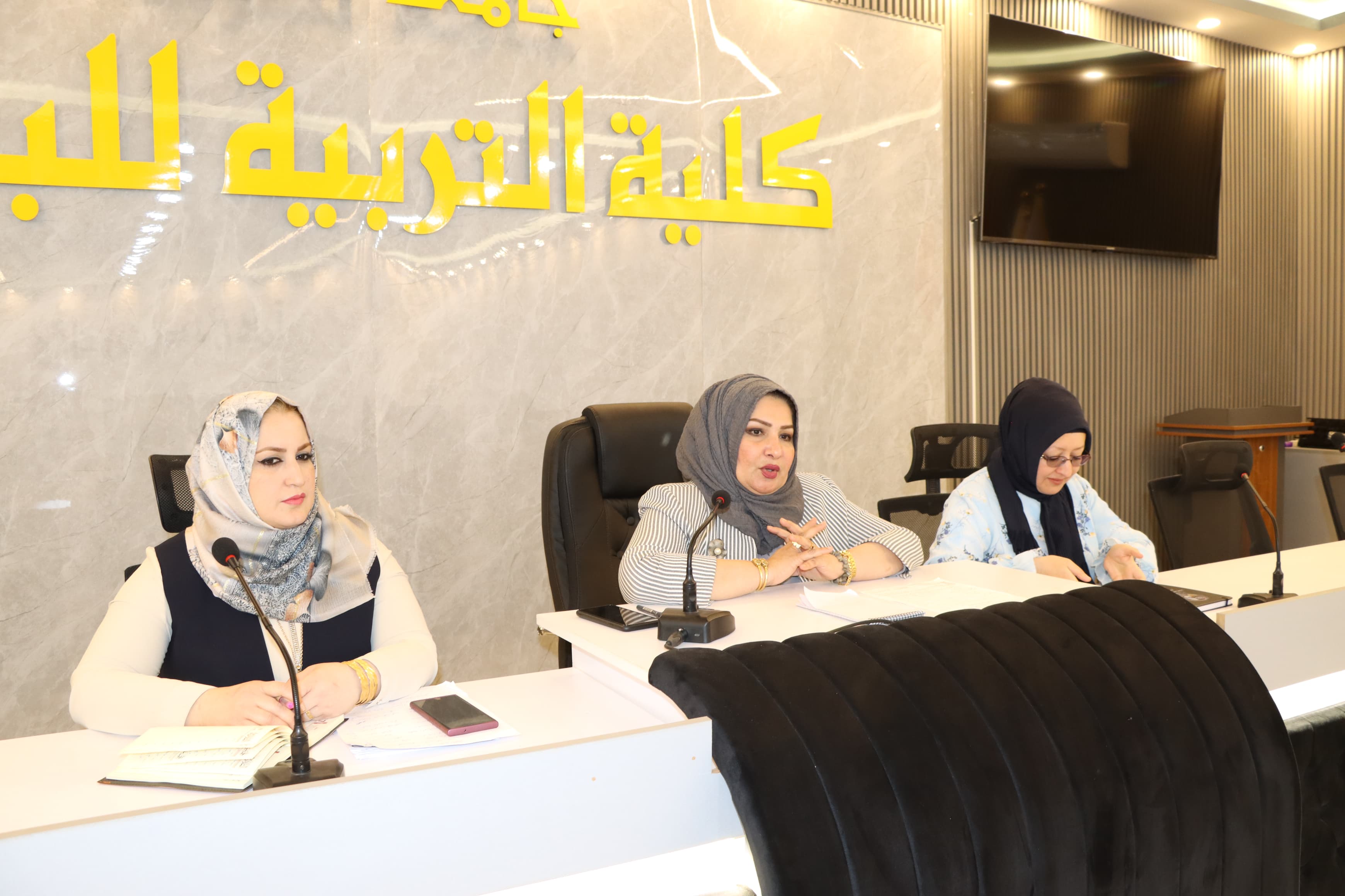 وفي نهاية الاجتماع اعربت السيدة عميد الكلية بالجهود المبذوله من قبل الكادر التدريسي والوظيفي لتحقيق النجاح والتميز في مجال التعليم