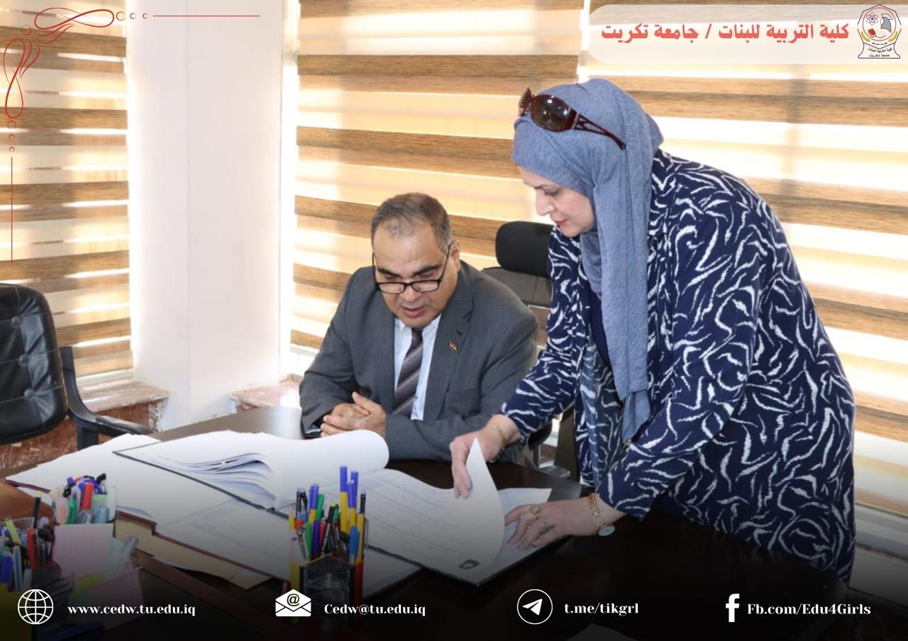 وكان في استقباله الأستاذ الدكتورة نجلاء عبدالحسين عليوي عميد كلية التربية للبنات ومعاونين العميد للشؤون الإدارية والعلمية