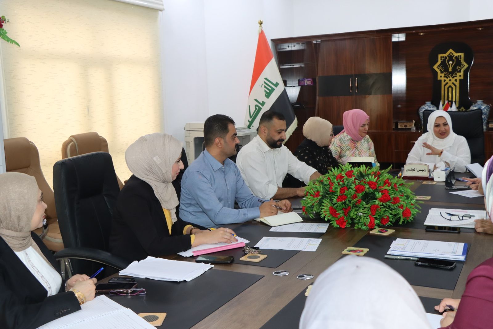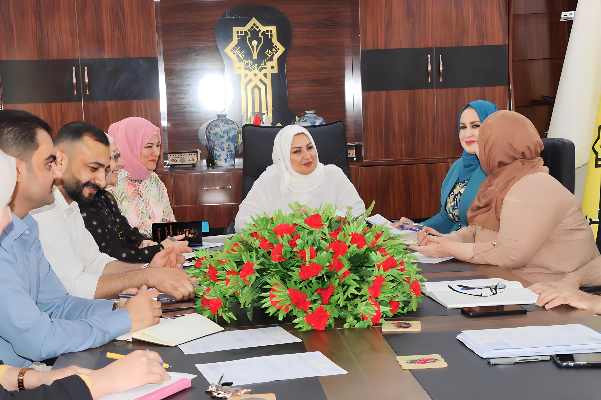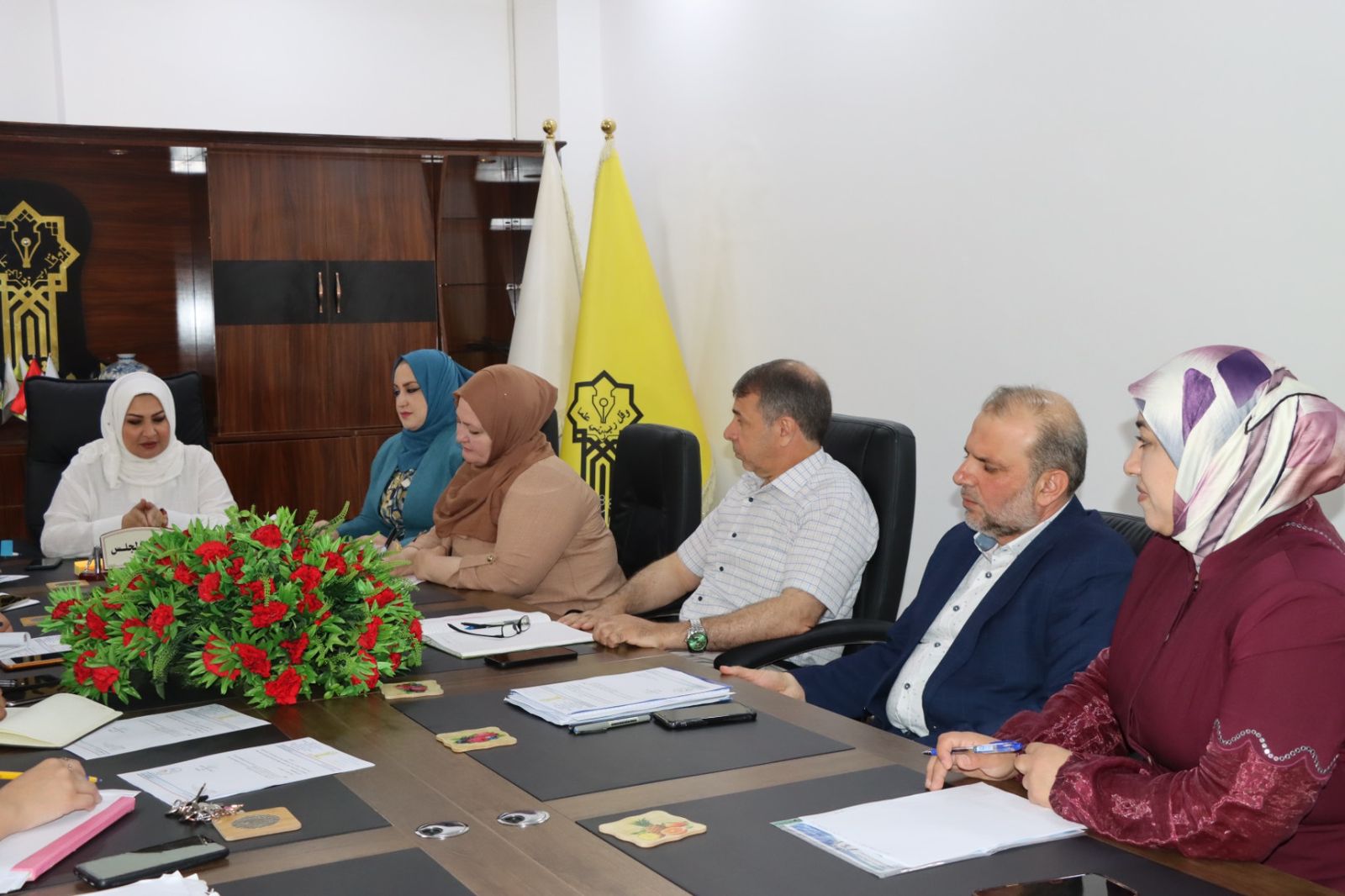 عقد مجلس كلية التربية للبنات جلسته الاستثنائية يوم الثلاثاء الموافق 7 /5 /2024 برئاسة السيدة رئيس مجلس الكلية الاستاذ الدكتورةنجلاء عبدالحسين عليوي المحترمة وبحضور الساده المعاونين وكافة اعضاء المجلس وفي بدء الاجتماع تم الترحيب بالحضور الكرام من قبل السيدة عميد الكلية ، ثم أنتقل المجلس الى مناقشة الأمور المطروحة على جدول أعمال الجلسة ومن أهمها: