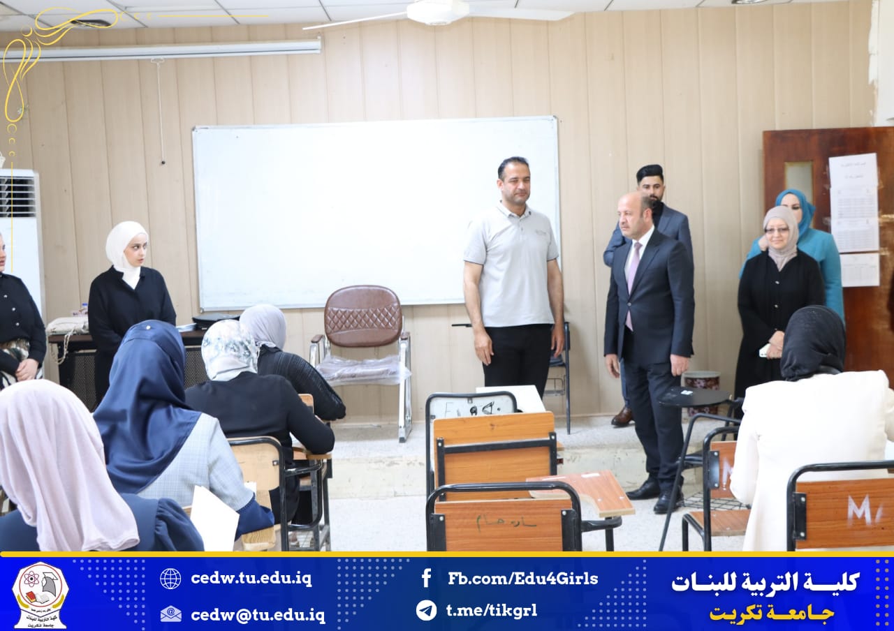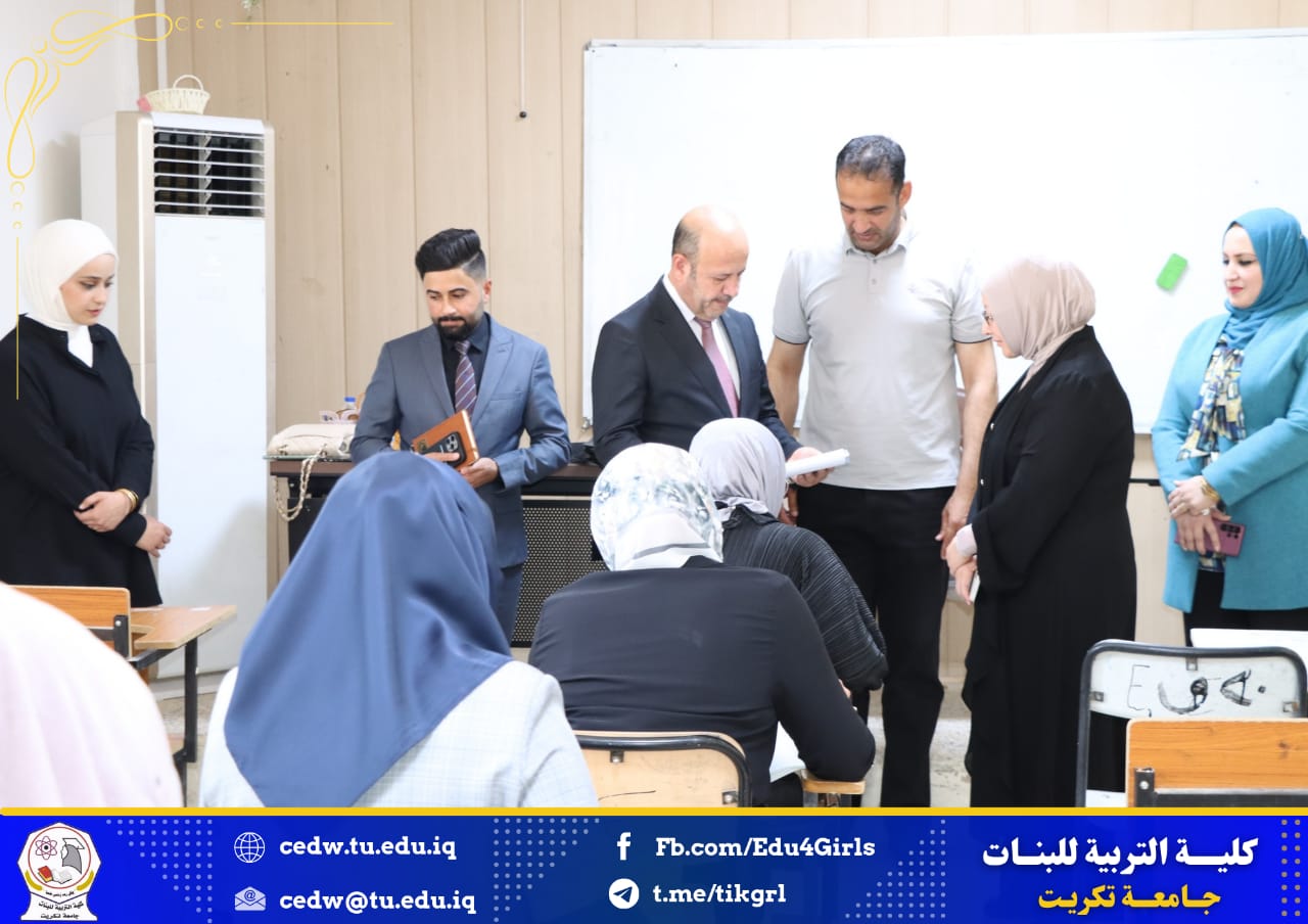 زار كلية التربية للبنات السيد رئيس جامعة تكريت الأستاذ الدكتور وعد محمود رؤوف يوم الأحد الموافق 2/ 6/ 2024 لتفقد سير الإمتحانات النهائية
