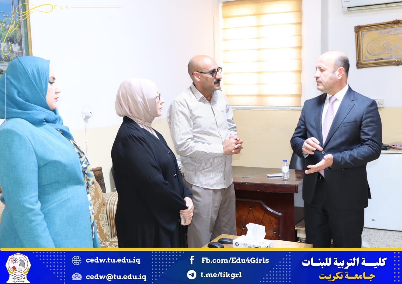 وكان في إستقباله السيدة معاون العميد للشؤون العلمية الاستاذ الدكتور انتصار غانم عبدالوهاب ومعاون العميد للشؤون الإدارية الأستاذ المساعد الدكتور سلمى خالد ياسين