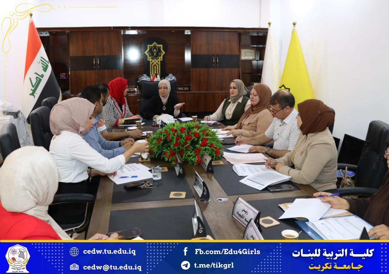 * وايضاً وناقش المجلس العديد من المسائل المطروحة على جدول الاعمال وأتخذ بشأنها القرارات المناسبة التي تساهم في انجاح العملية التعليمية في كلية التربية للبنات